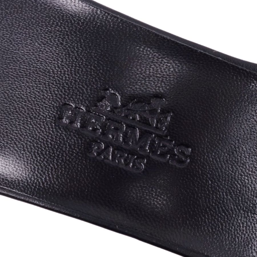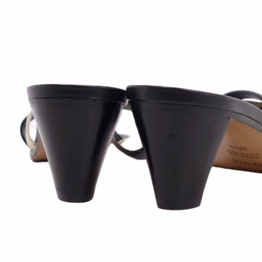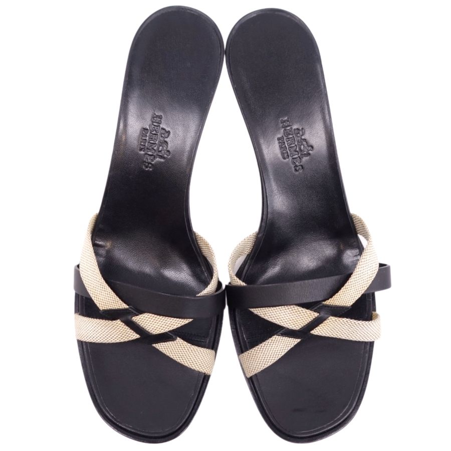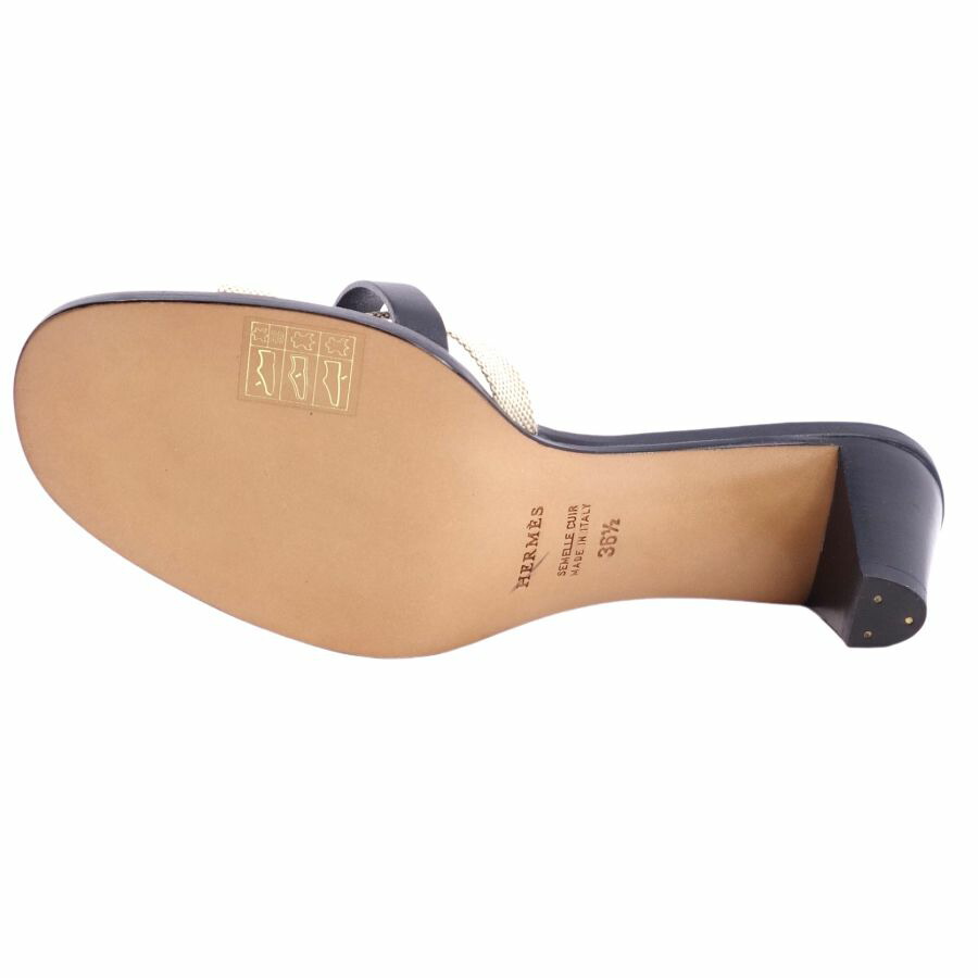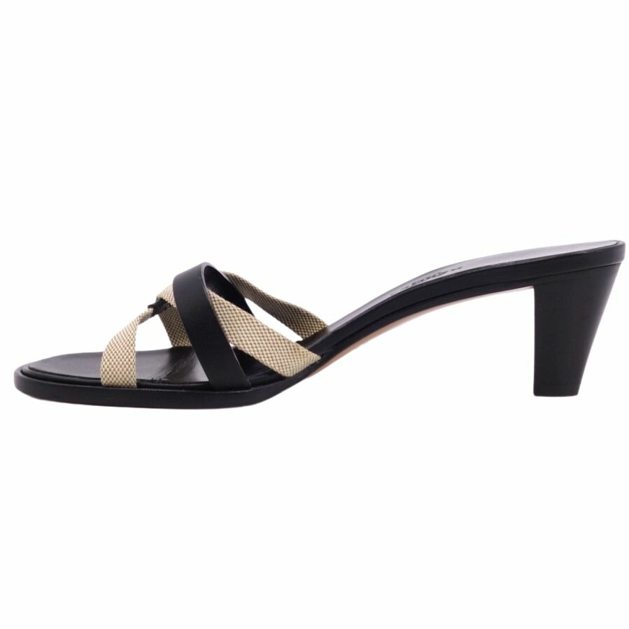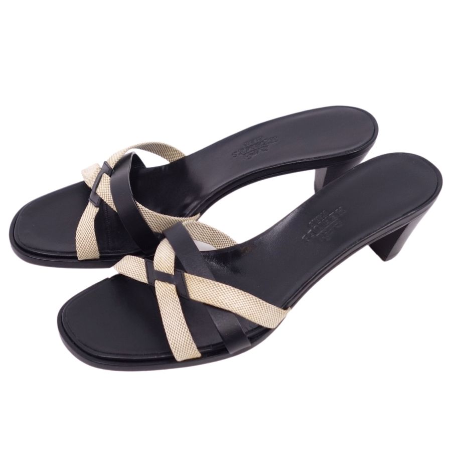 エルメス HERMES サンダル キャンバス カーフレザー ヒール シューズ 靴 レディース イタリア製 ベージュ/ブラック サイズ36 1/2(23.5cm相当)
