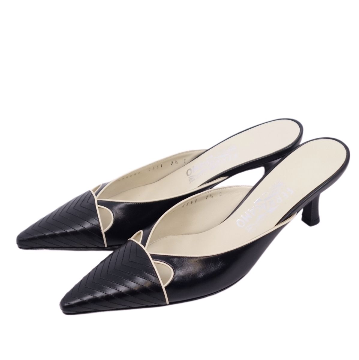 サルヴァトーレ フェラガモ Salvatore Ferragamo パンプス サンダル カーフレザー ヒール シューズ 靴 レディース ブラック サイズ7.5C(25cm相当)