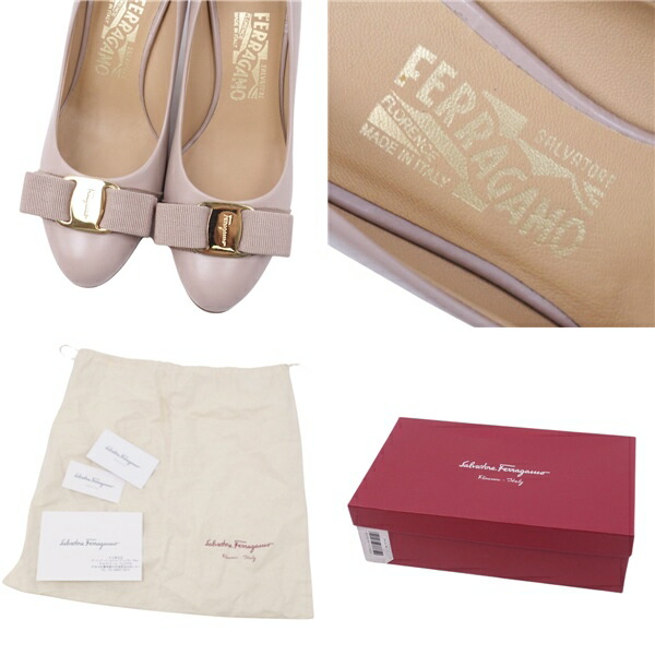 サルヴァトーレ フェラガモ Salvatore Ferragamo パンプス ヴァラ レザー シューズ ヒール レディース 靴 ピンクベージュ サイズ5D(22.5cm相当)