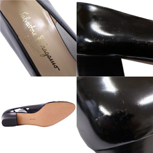 商品名 【新古品】サルヴァトーレ フェラガモ Salvatore Ferragamo パンプス クロコ型押し ガンチーニ エナメル ヒール シューズ 靴 レディース 7 1/2B(25cm相当) ブラック レディースシューズ【中古】