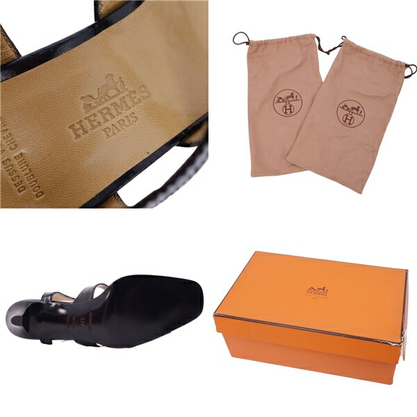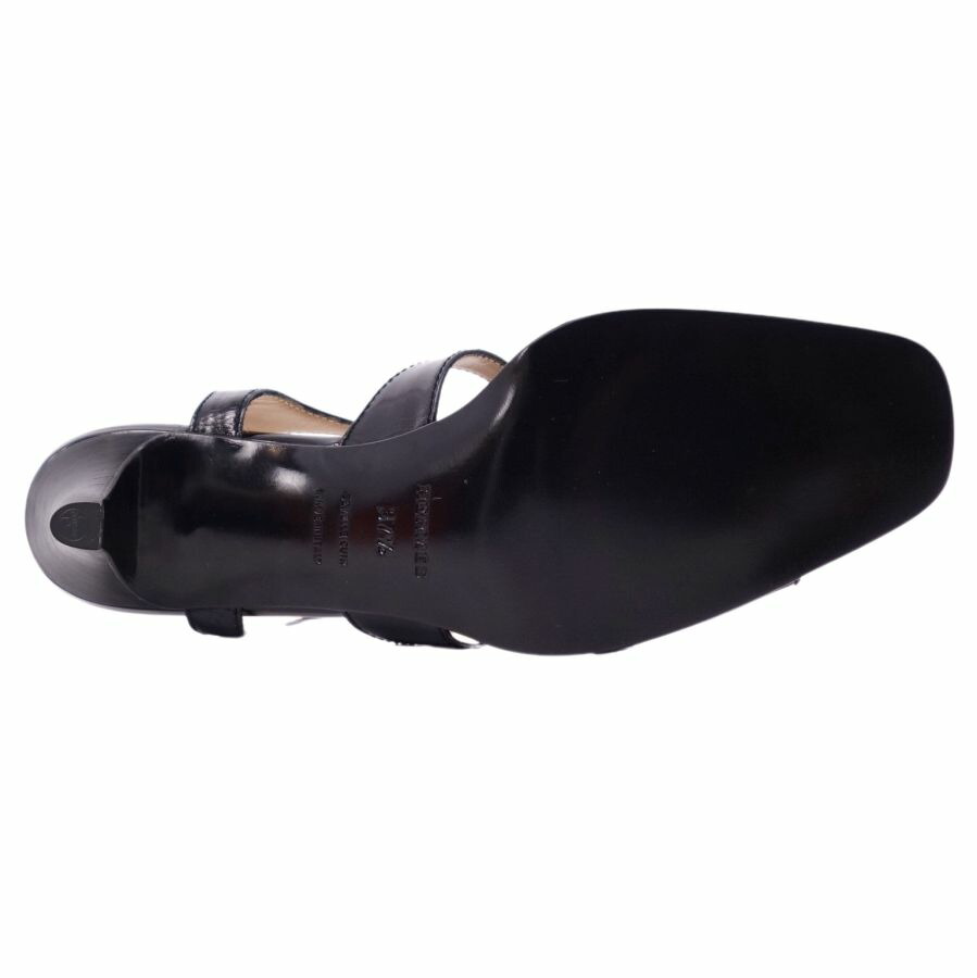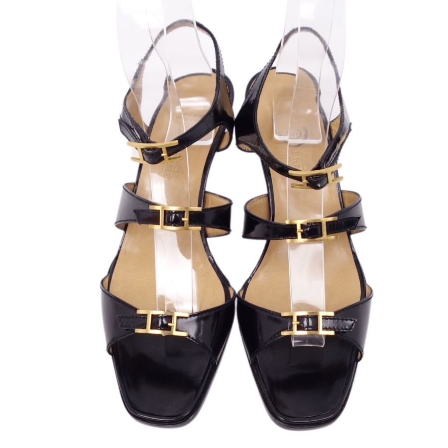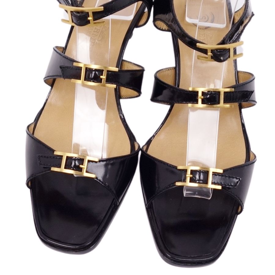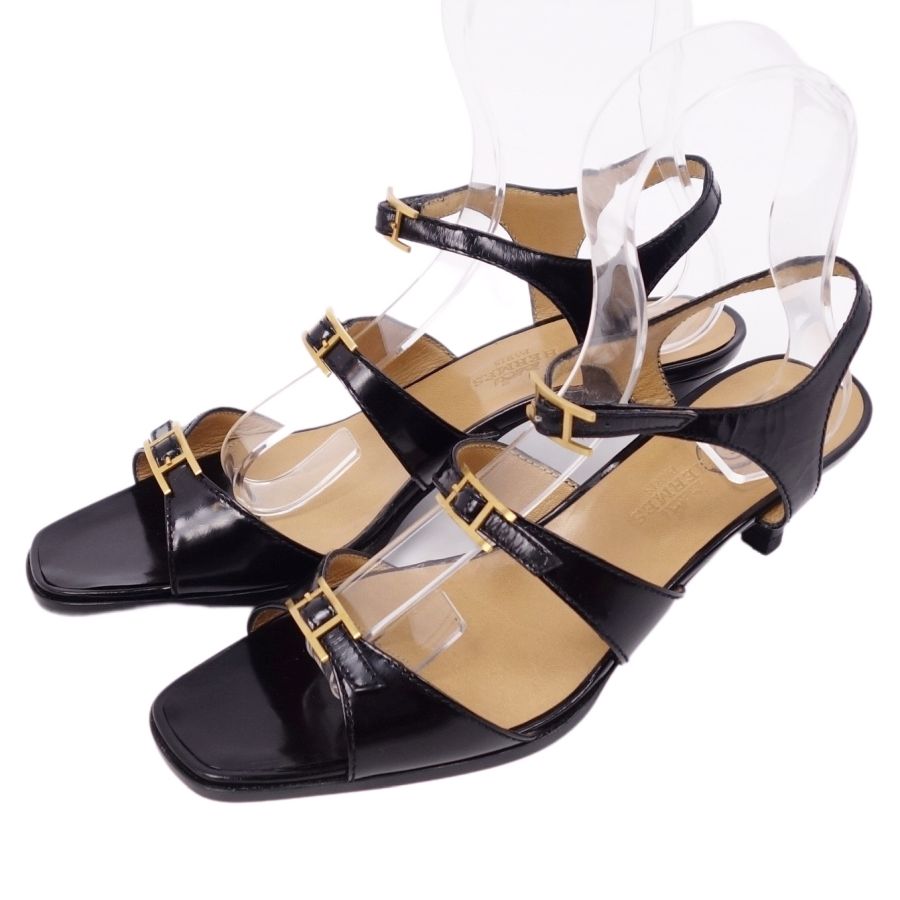 エルメス HERMES サンダル アピ金具 エナメルレザー ヒール シューズ 靴 レディース イタリア製 ブラック サイズ37 1/2(24.5cm相当)