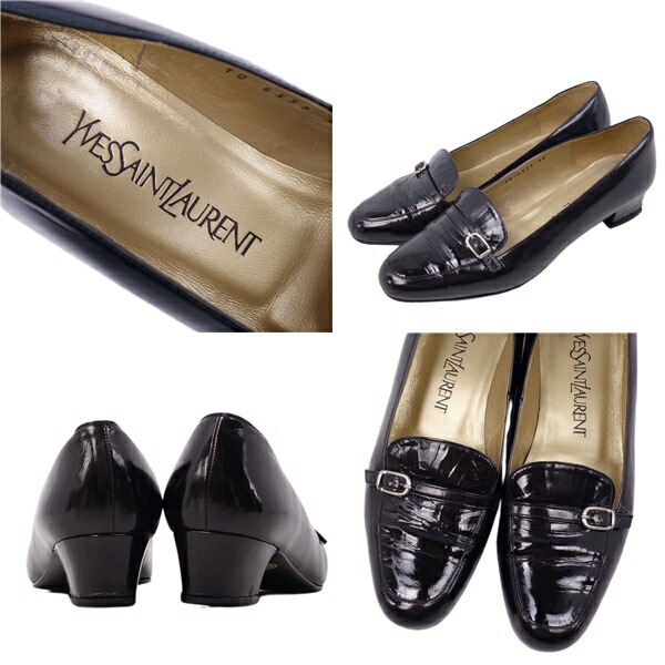 Vintage イヴサンローラン Yves Saint Laurent ローファー パンプス ヒール パテントレザー レディース シューズ 靴 ブラック サイズ36(23cm相当)