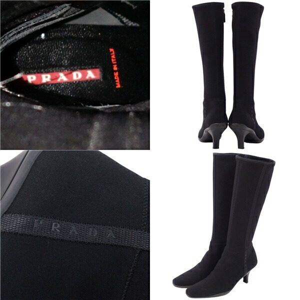 商品名 プラダ スポーツ PRADA SPORT ブーツ ロングブーツ ヒール ストレッチ ジャージー レディース イタリア製 シューズ 36.5(23.5cm) ブラック【中古】