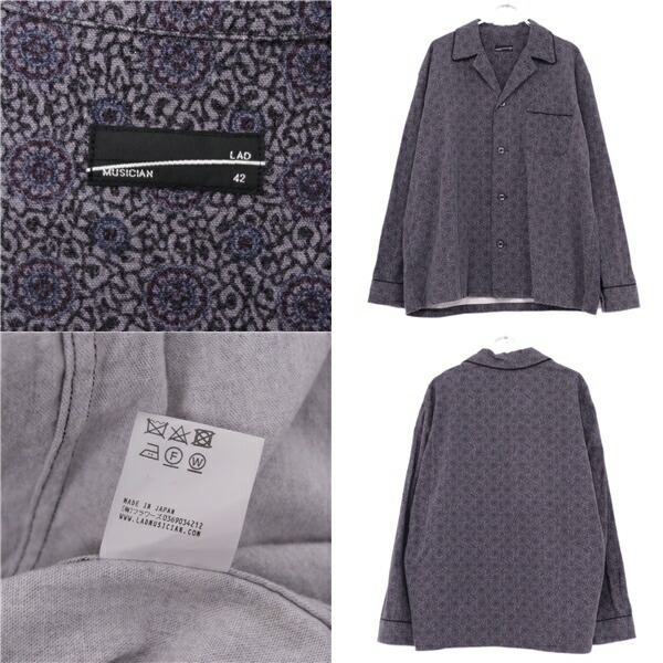ラッドミュージシャン LAD MUSICIAN シャツ ジャケット 総柄 コットン トップス メンズ グレー サイズ42(S相当)