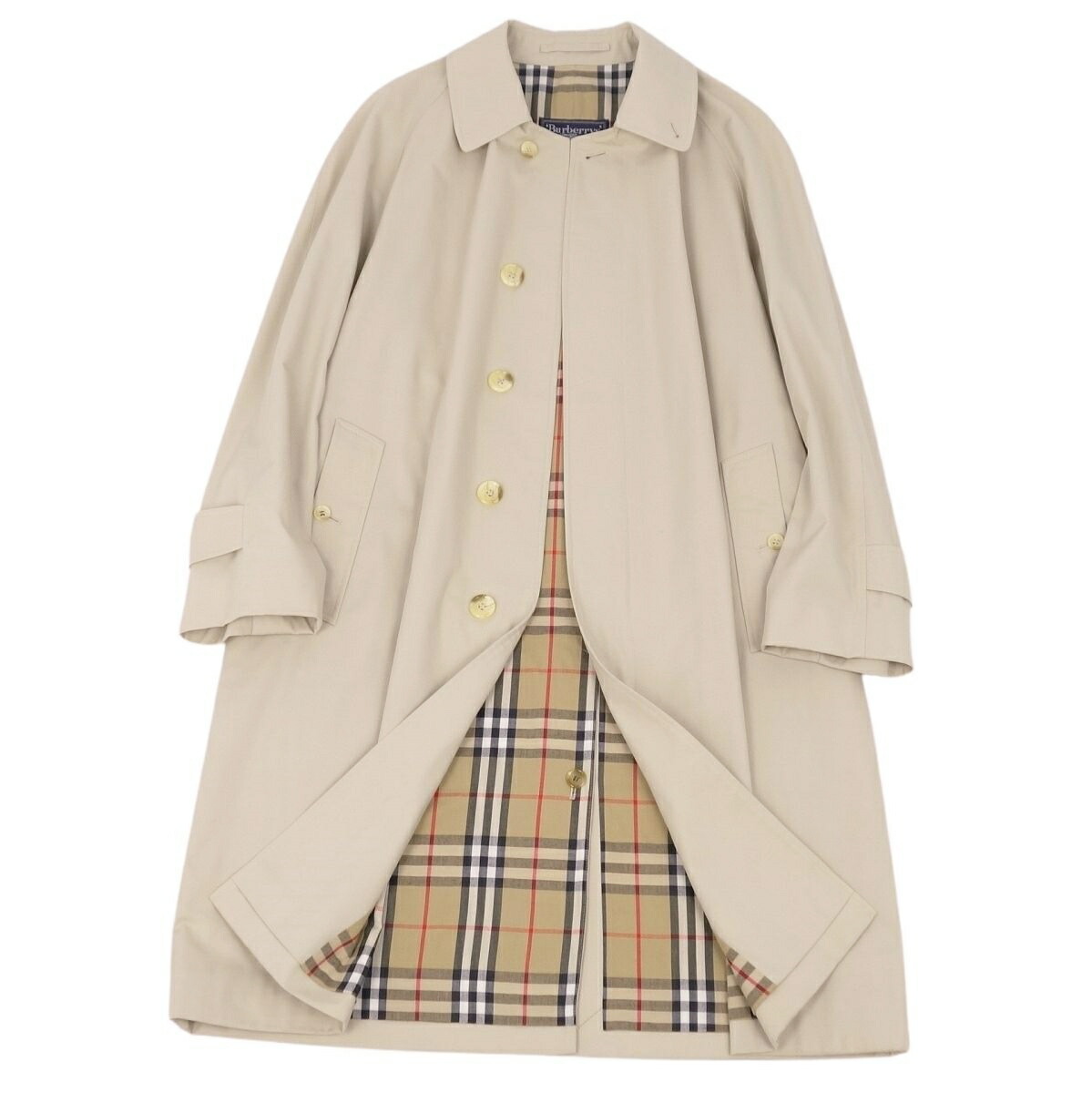 Vintage バーバリー Burberrys コート 英国製 ステンカラーコート バルマカーンコート メンズ コットン 裏チェック アウター 古着 ライトベージュ サイズ46SHORT(S相当)