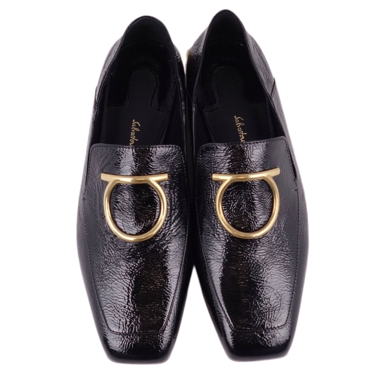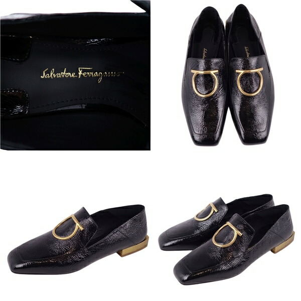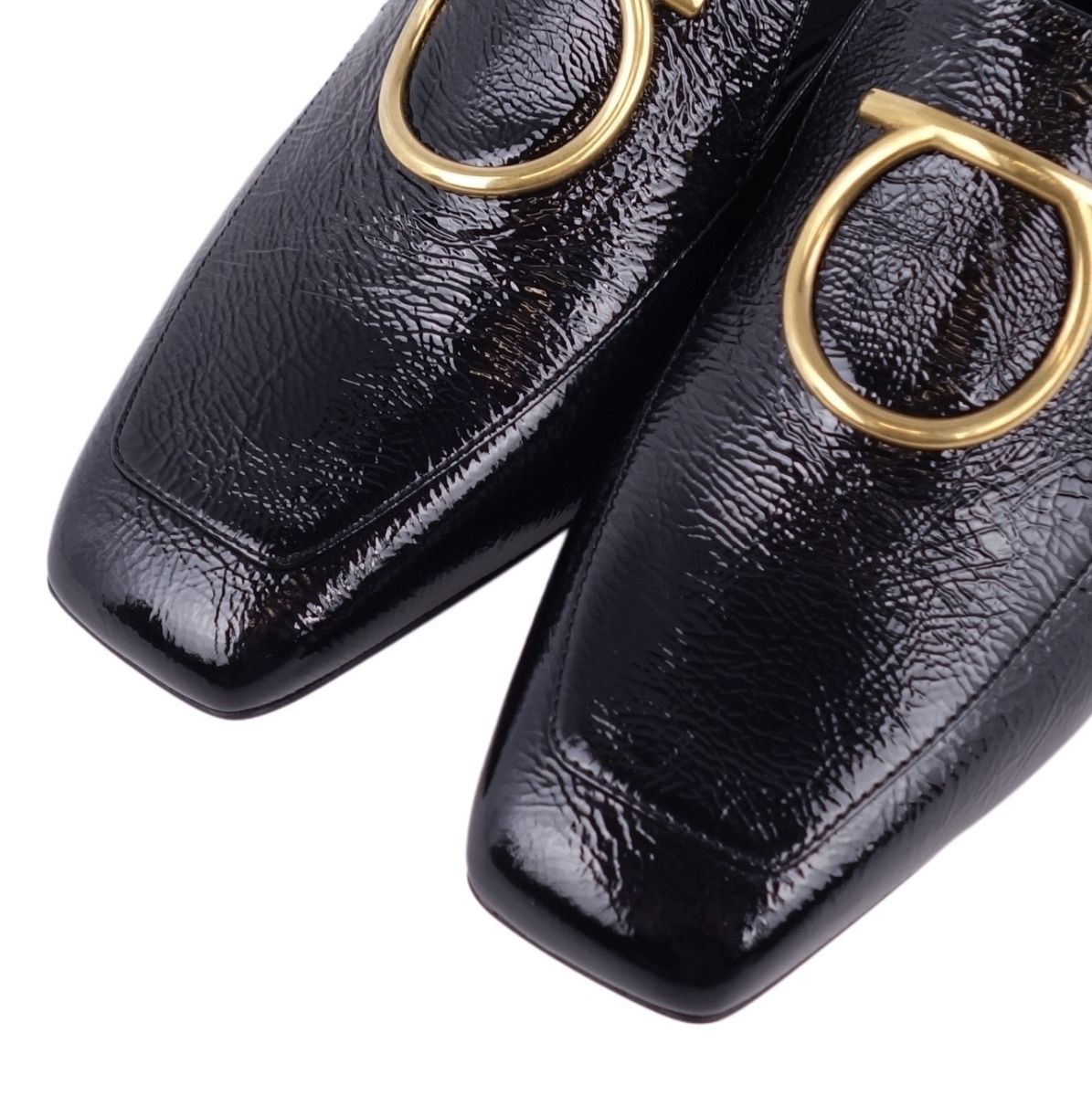 【新古品】サルヴァトーレ フェラガモ Salvatore Ferragamo ローファー パンプス ガンチーニ エナメル パテント ヒール シューズ 靴 レディース イタリア製 5D(22.5cm相当) ブラック【中古】