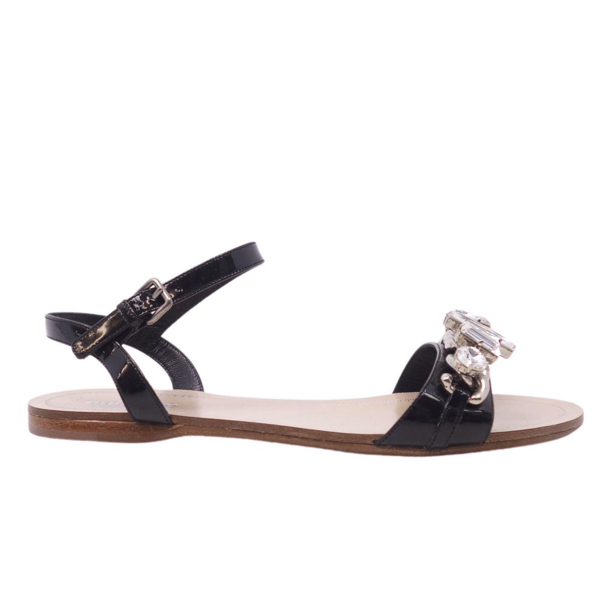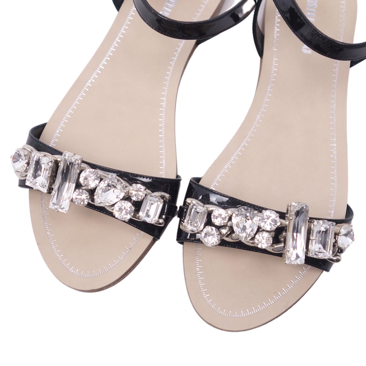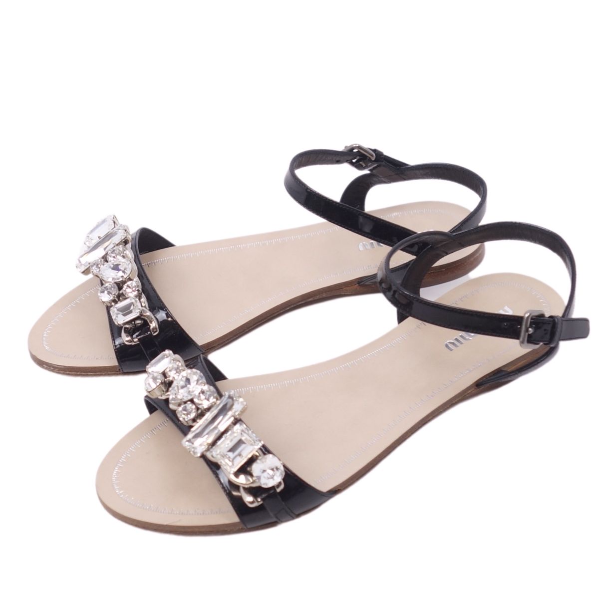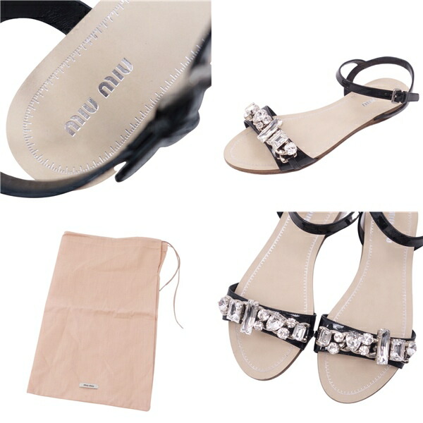 ミュウミュウ miu miu サンダル パテントレザー ビジュー エナメル ストラップ シューズ 靴 レディース ブラック サイズ35.5(22.5cm相当)