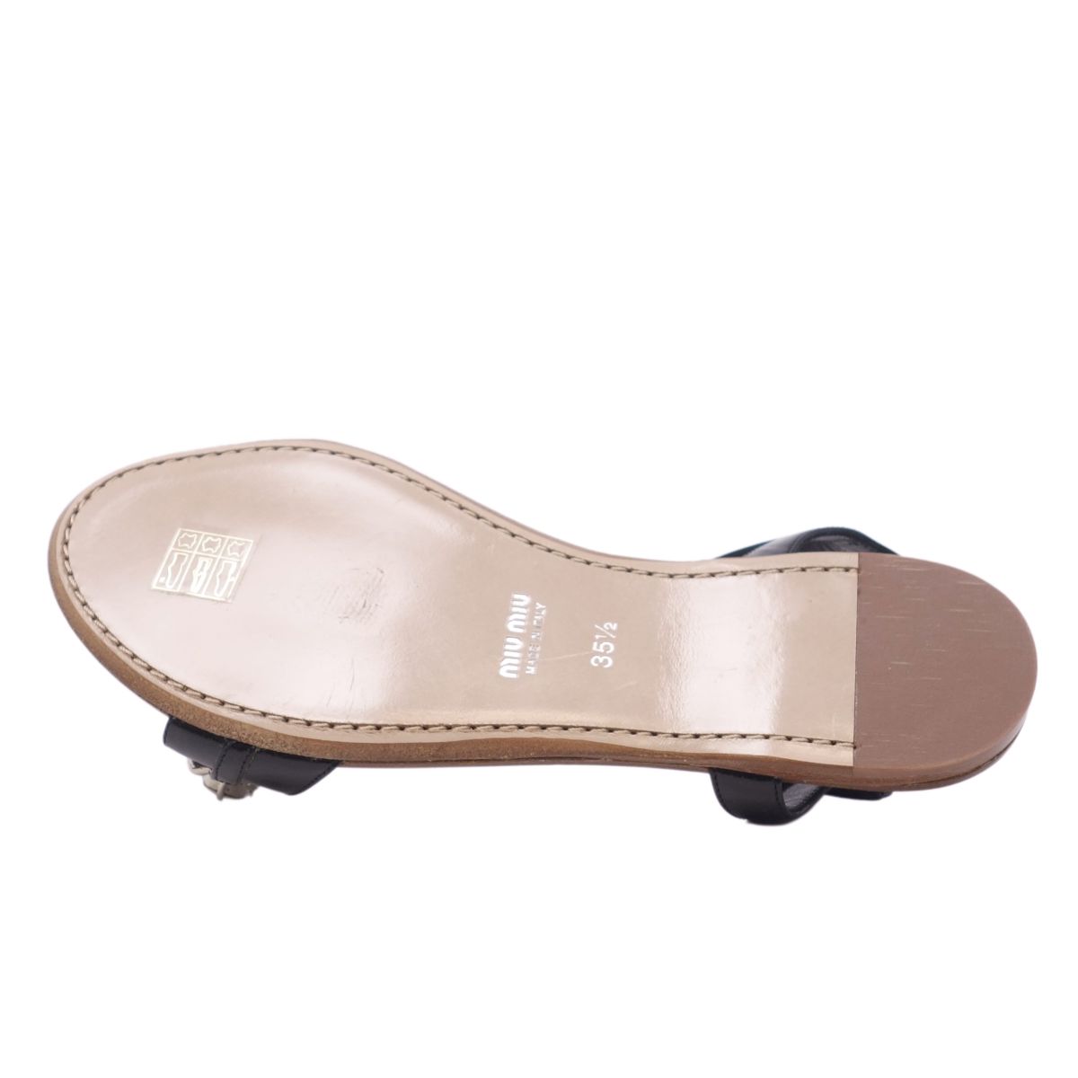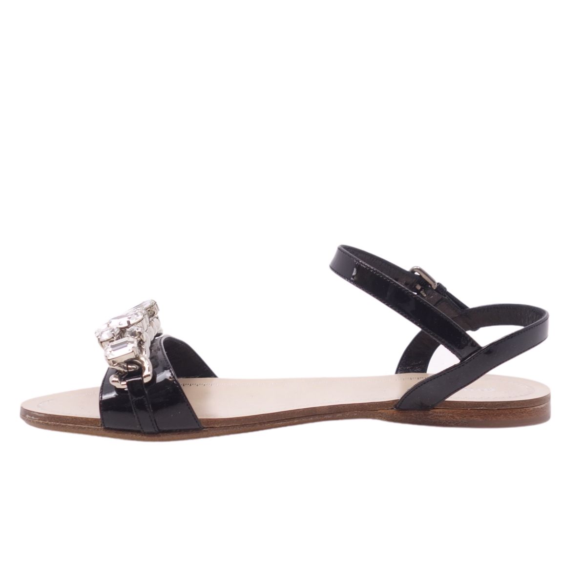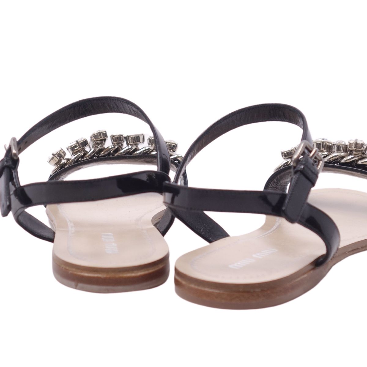 ミュウミュウ miu miu サンダル パテントレザー ビジュー エナメル ストラップ シューズ 靴 レディース ブラック サイズ35.5(22.5cm相当)