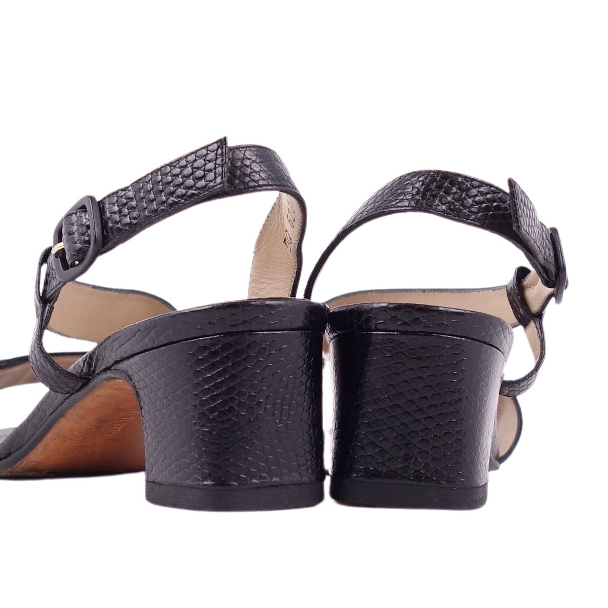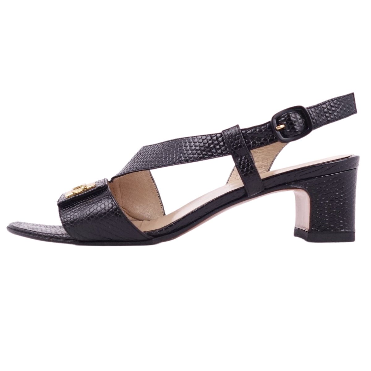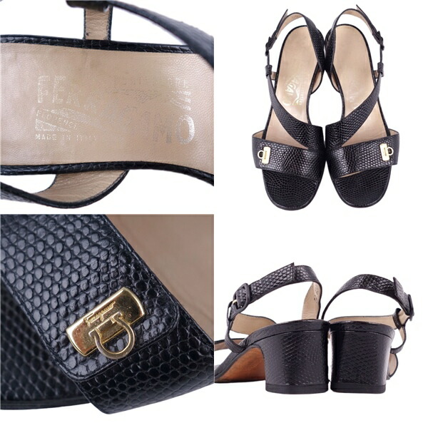 サルヴァトーレ フェラガモ Salvatore Ferragamo サンダル リザード型押し ガンチーニ金具 ヒール シューズ 靴 レディース ブラック サイズ6D(23.5cm相当)