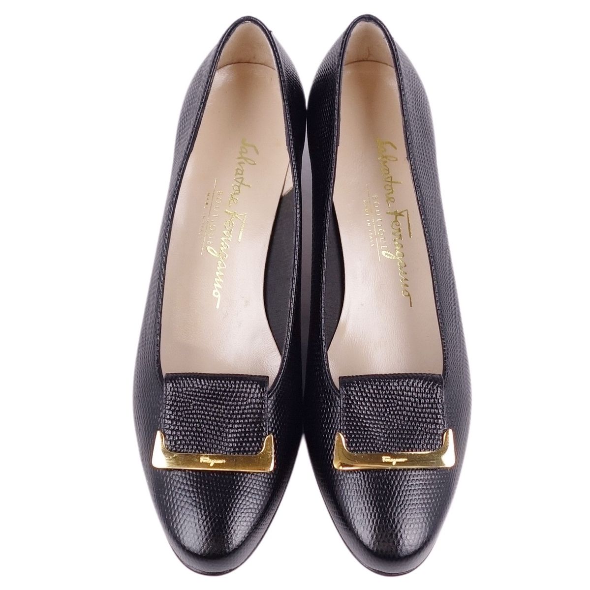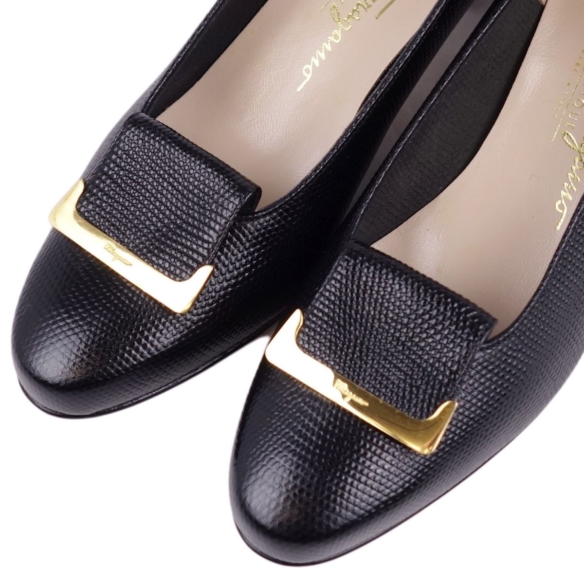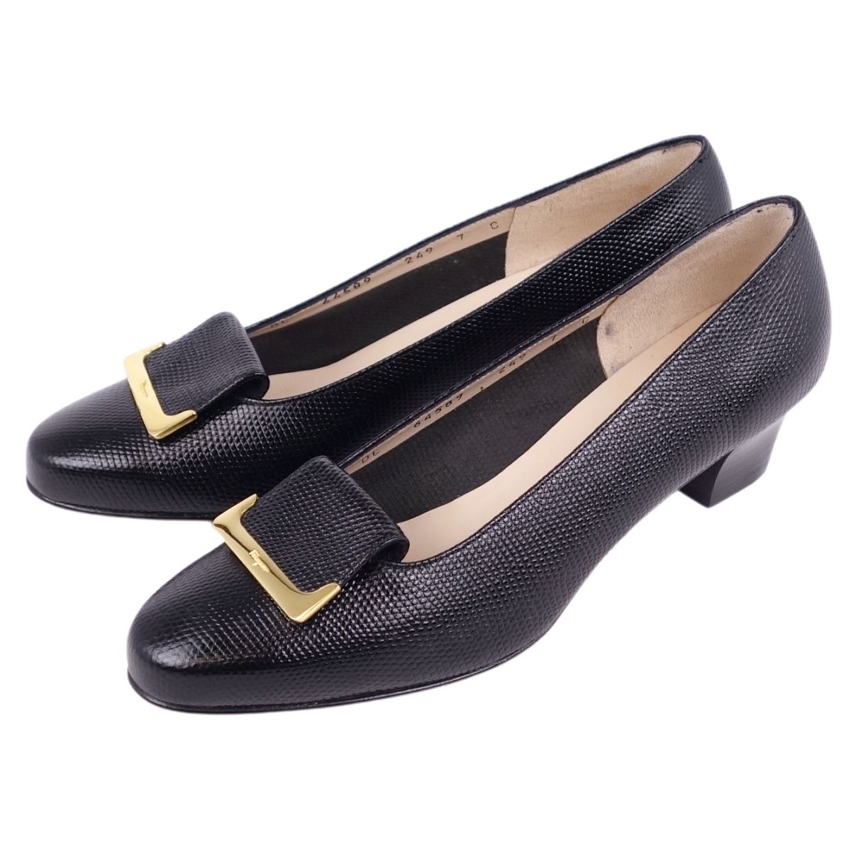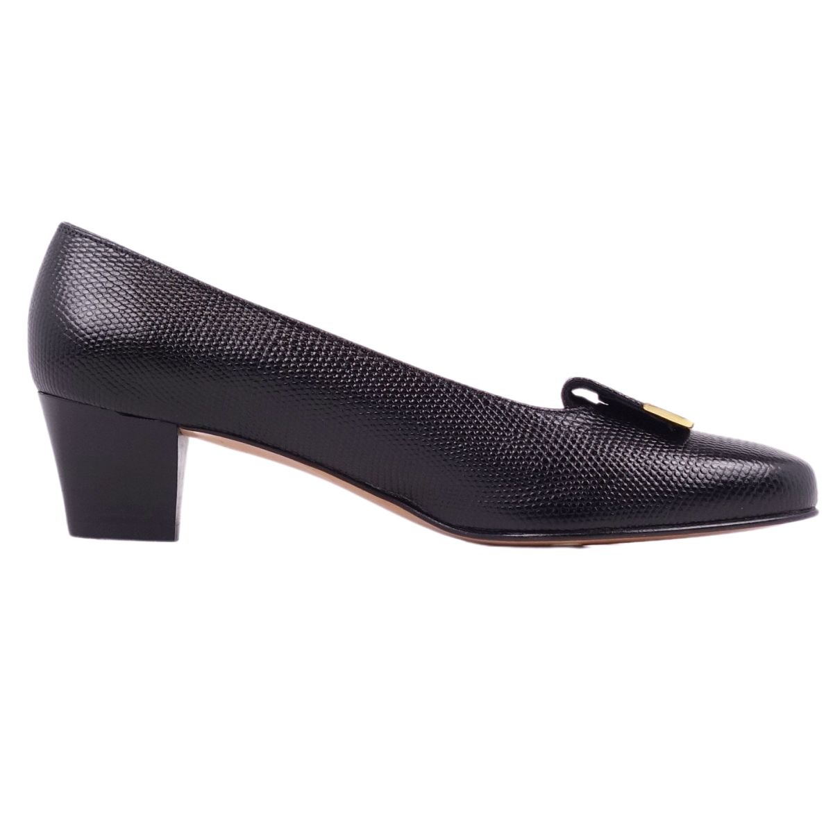 サルヴァトーレ フェラガモ Salvatore Ferragamo パンプス リザード型押し ヒール シューズ レディース イタリア製 ブラック サイズ7C(24.5cm相当)