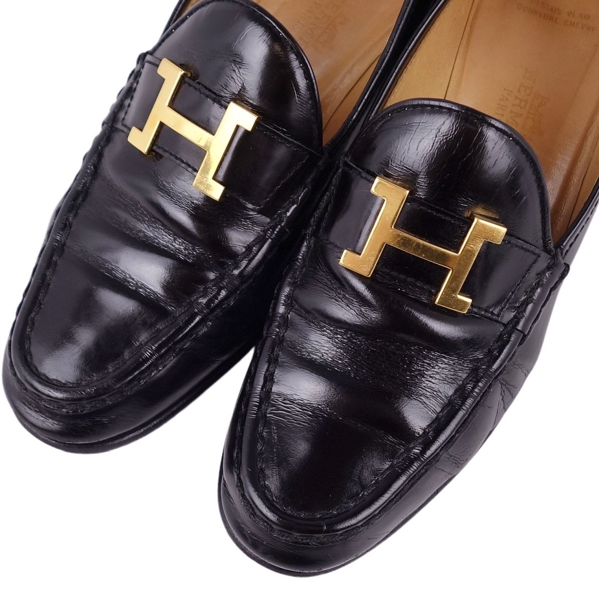エルメス HERMES ローファー ヒール モカシン コンスタンス Hロゴ レディース 靴 シューズ ブラック サイズ37(23cm相当)