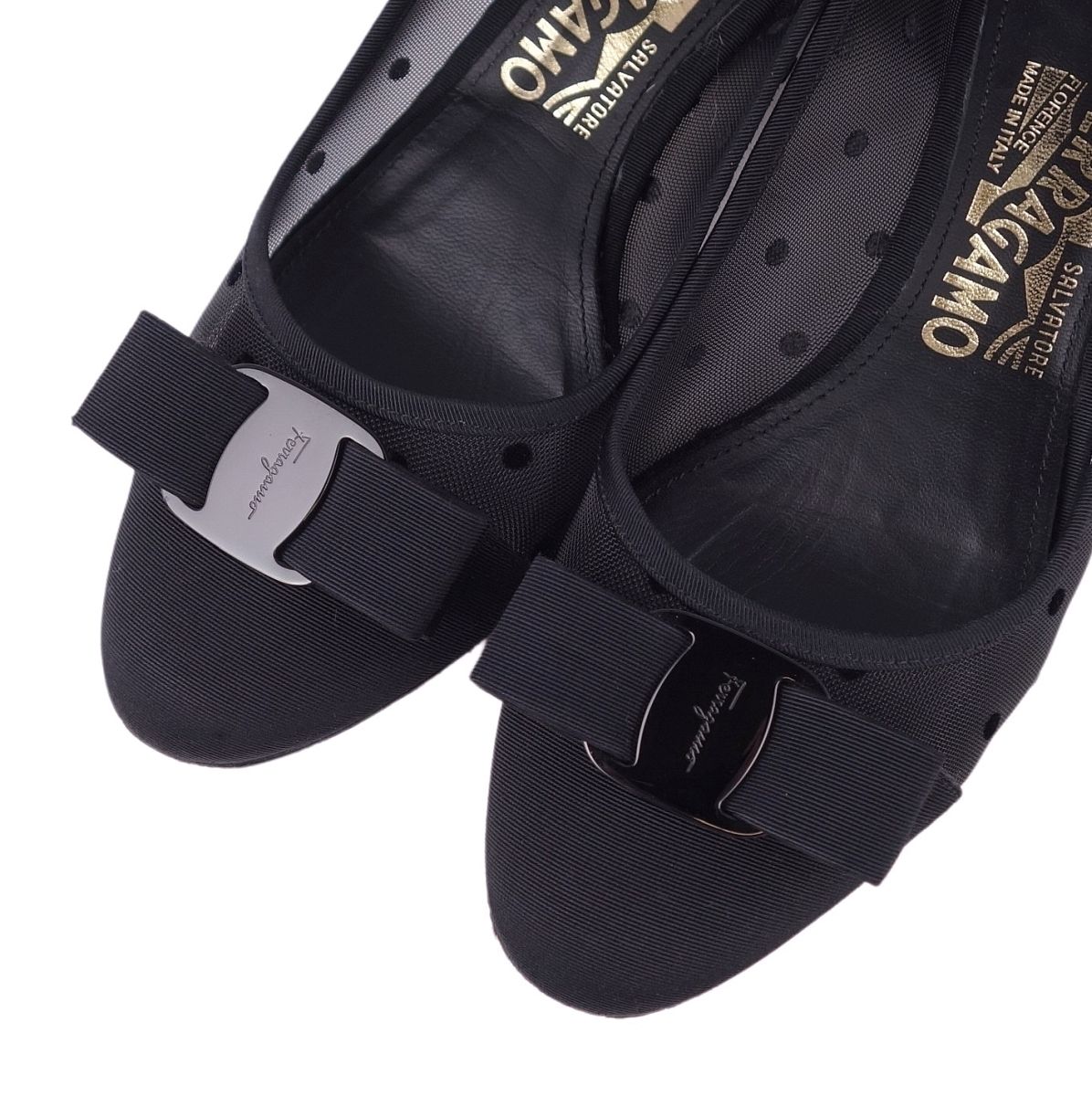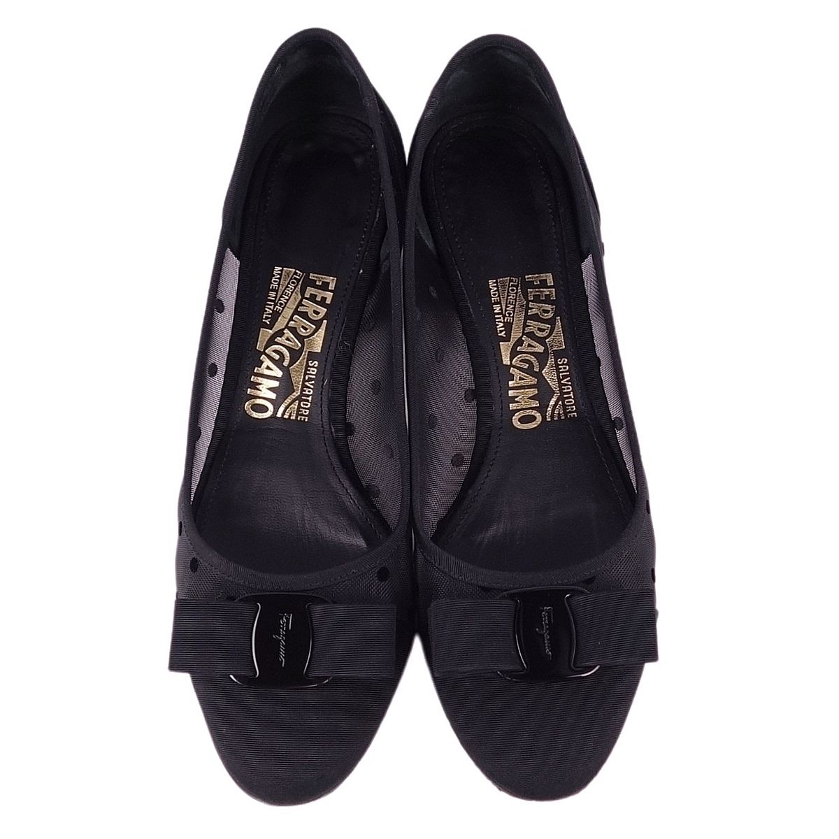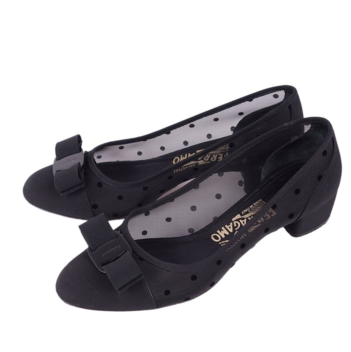 サルヴァトーレ フェラガモ Salvatore Ferragamo パンプス ヴァラ メッシュ ヒール ドット キャンバス レディース シューズ 靴 ブラック サイズ7D(24.5cm相当)
