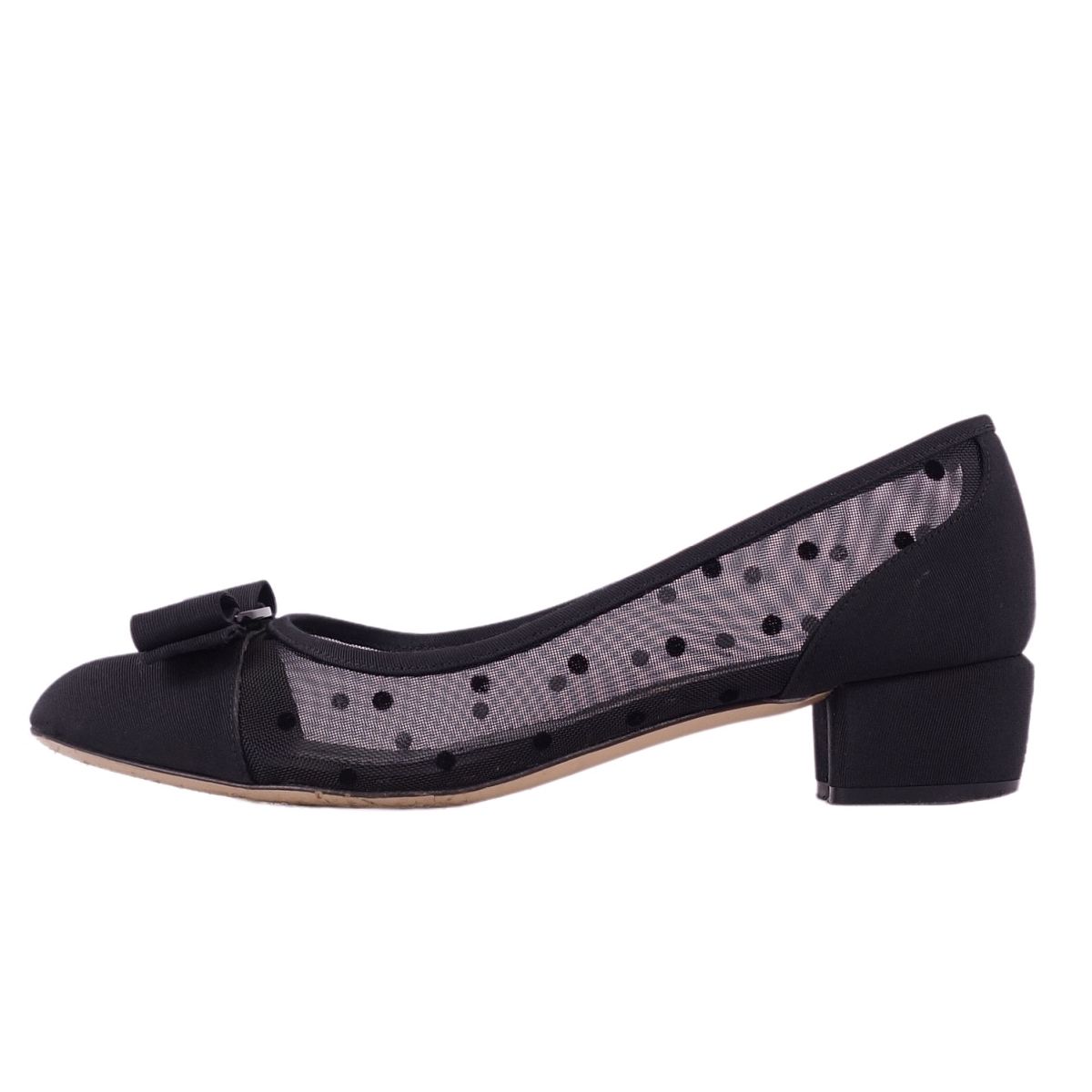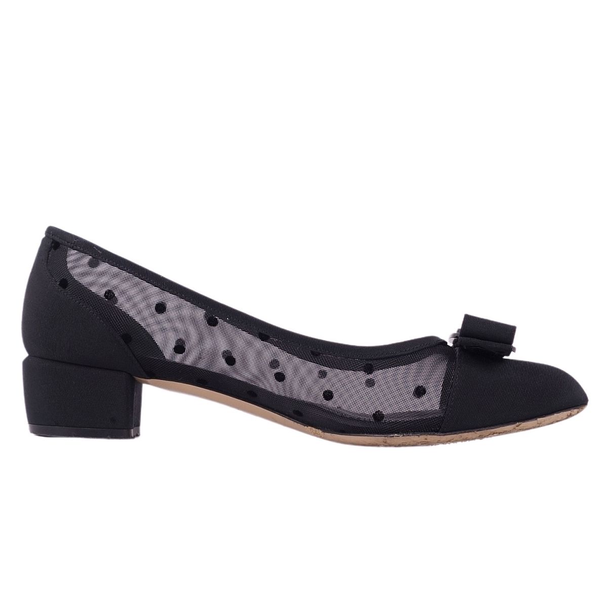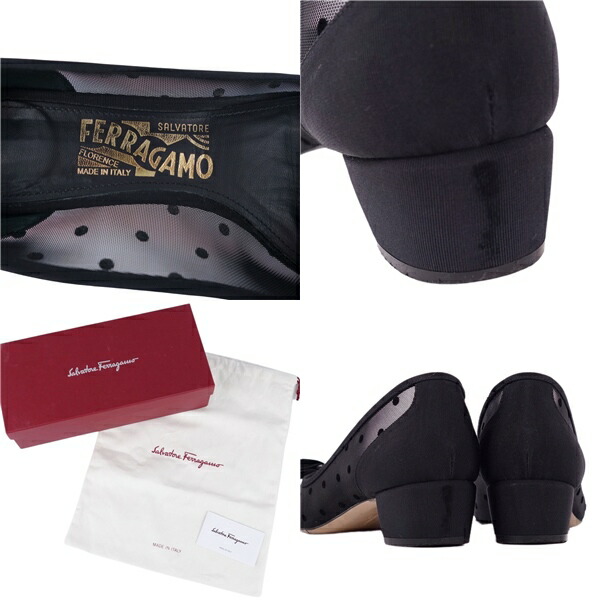 サルヴァトーレ フェラガモ Salvatore Ferragamo パンプス ヴァラ メッシュ ヒール ドット キャンバス レディース シューズ 靴 ブラック サイズ7D(24.5cm相当)