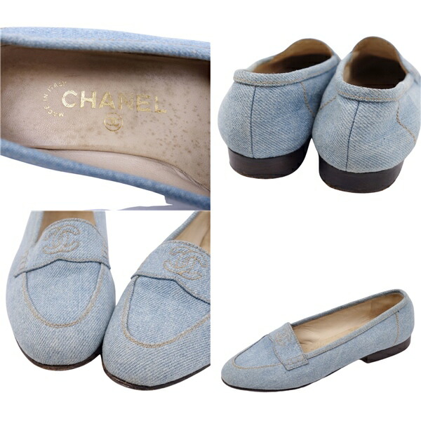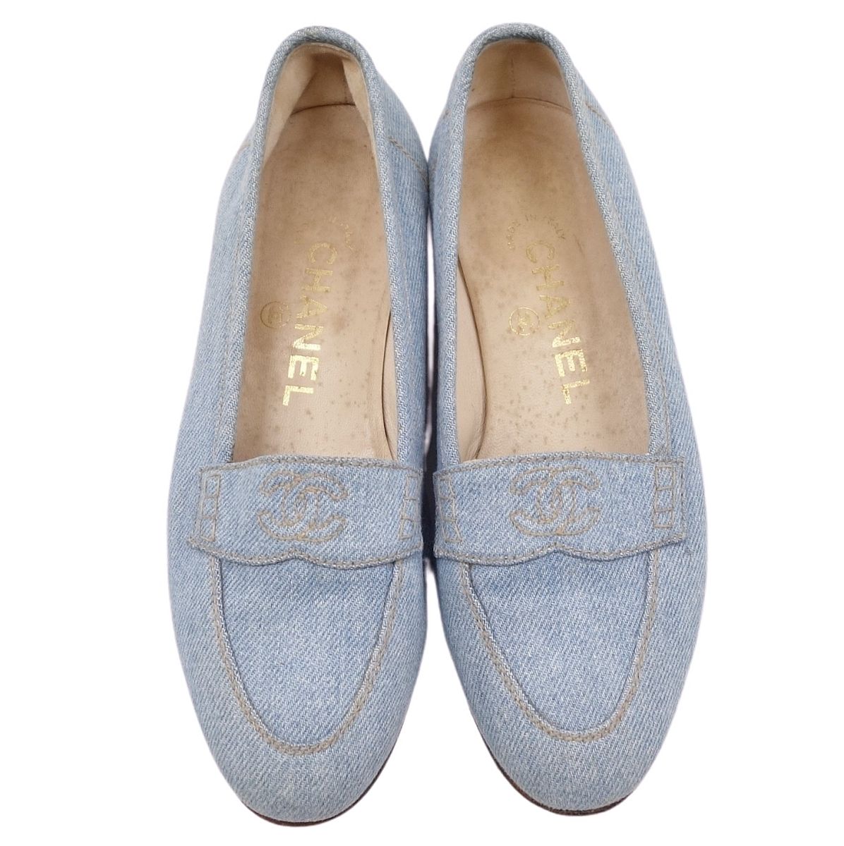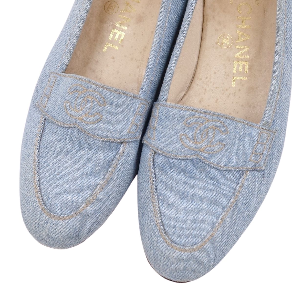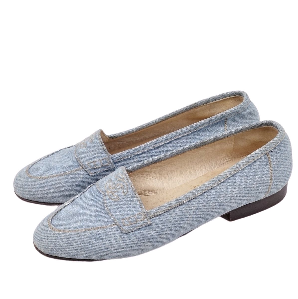 Vintage シャネル CHANEL パンプス フラットパンプス ココマーク デニム レディース シューズ 靴 インディゴブルー サイズ36.5