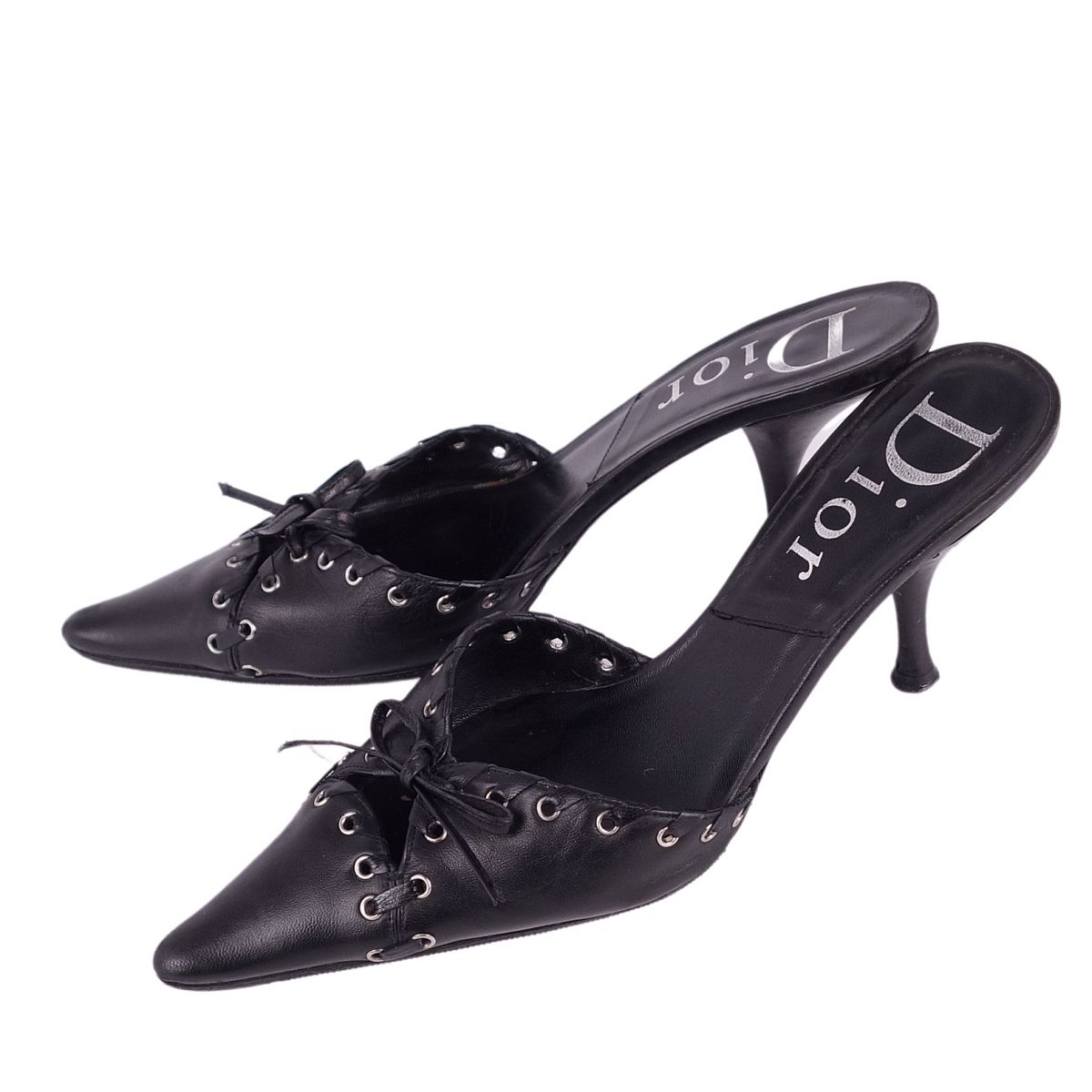 クリスチャンディオール Christian Dior ミュール サンダル カーフレザー レディース シューズ 靴 ブラック サイズ36.5(23.5cm相当)