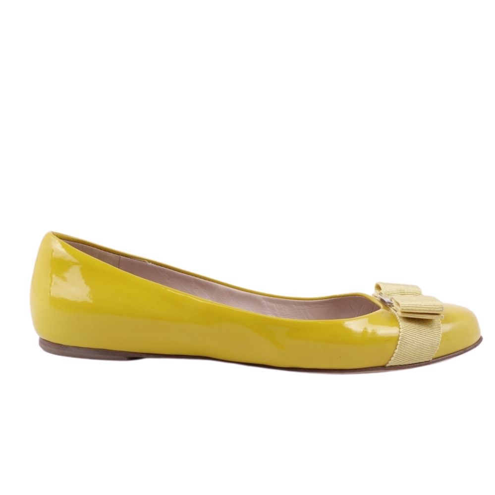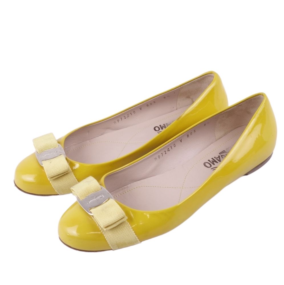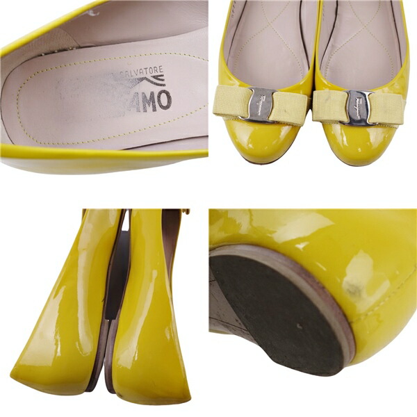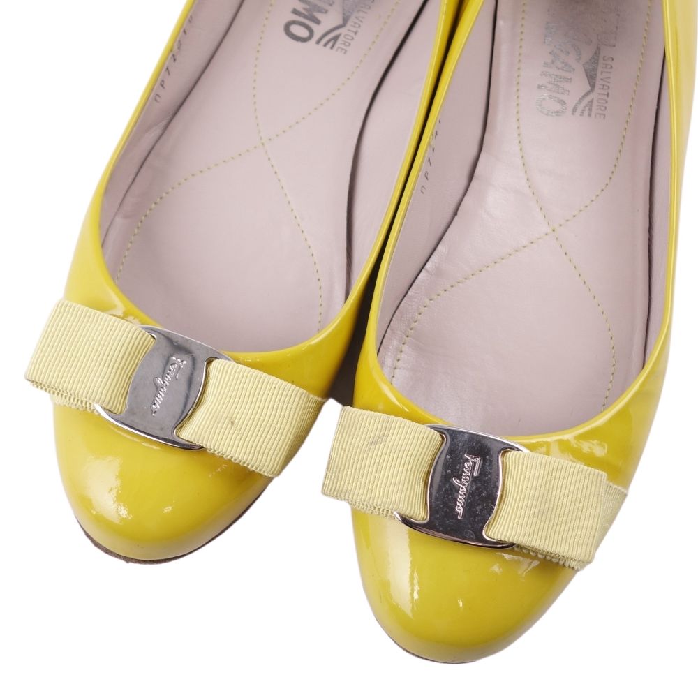 サルヴァトーレ フェラガモ Salvatore Ferragamo パンプス ヴァラ エナメルレザー ヒール シューズ 靴 レディース イエロー サイズ6 1/2C(24cm相当)