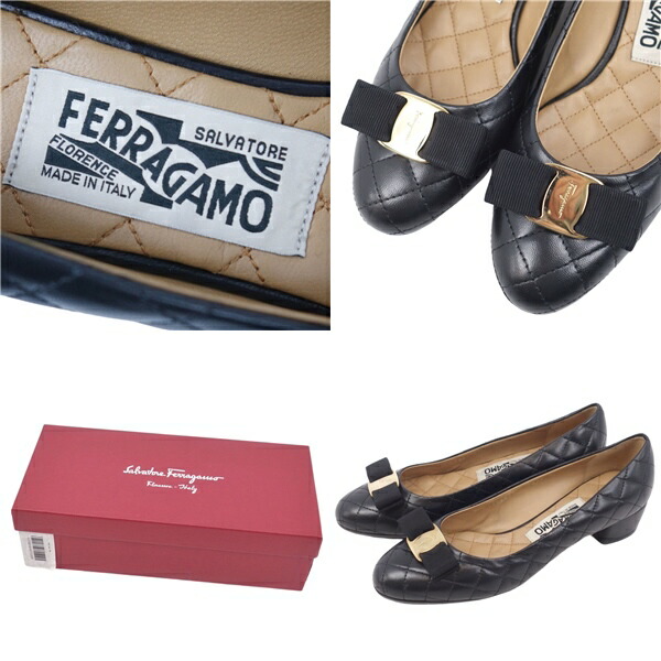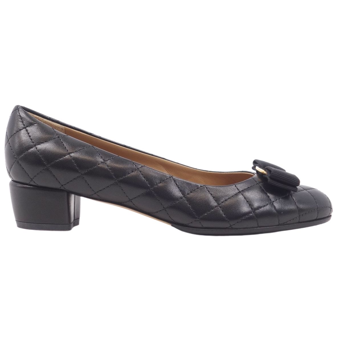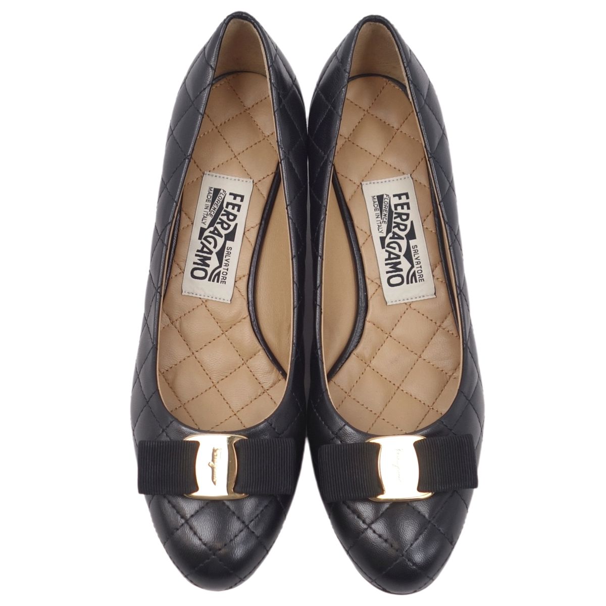 サルヴァトーレ フェラガモ Salvatore Ferragamo パンプス ヴァラ キルティング カーフレザー イタリア製 レディース シューズ 靴 ブラック サイズ8C(25.5cm相当)