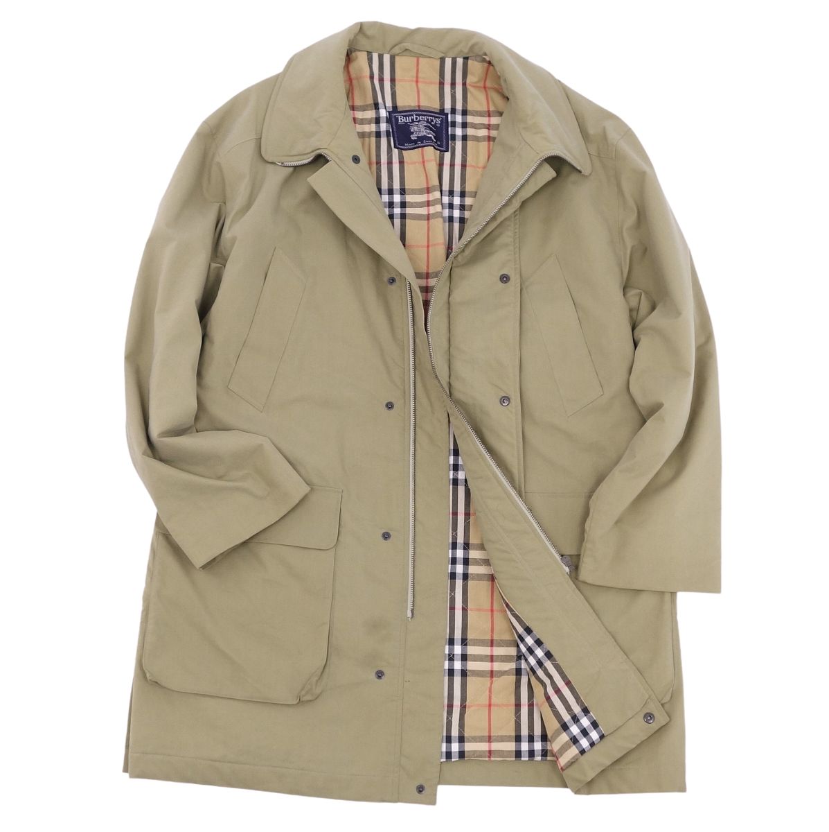 Vintage バーバリー Burberrys コート 中綿 キルティング ジャケット メンズ 裏チェック ジップアップ スタンドカラー アウター ライトカーキ サイズ50(L相当)