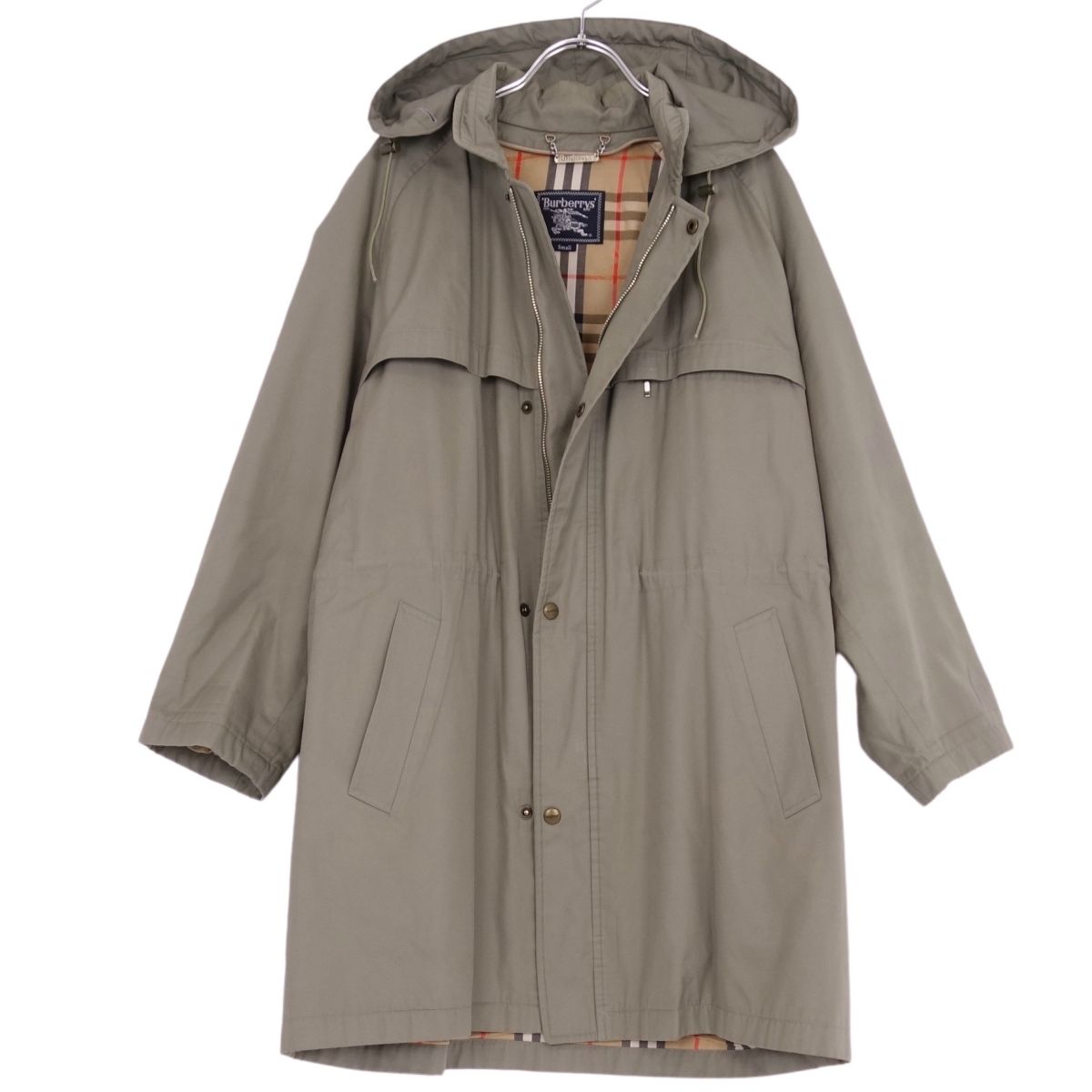 Vintage バーバリー Burberrys コート フード付き 中綿入り ロングコート 裏チェック コットン100% アウター メンズ カーキ サイズS