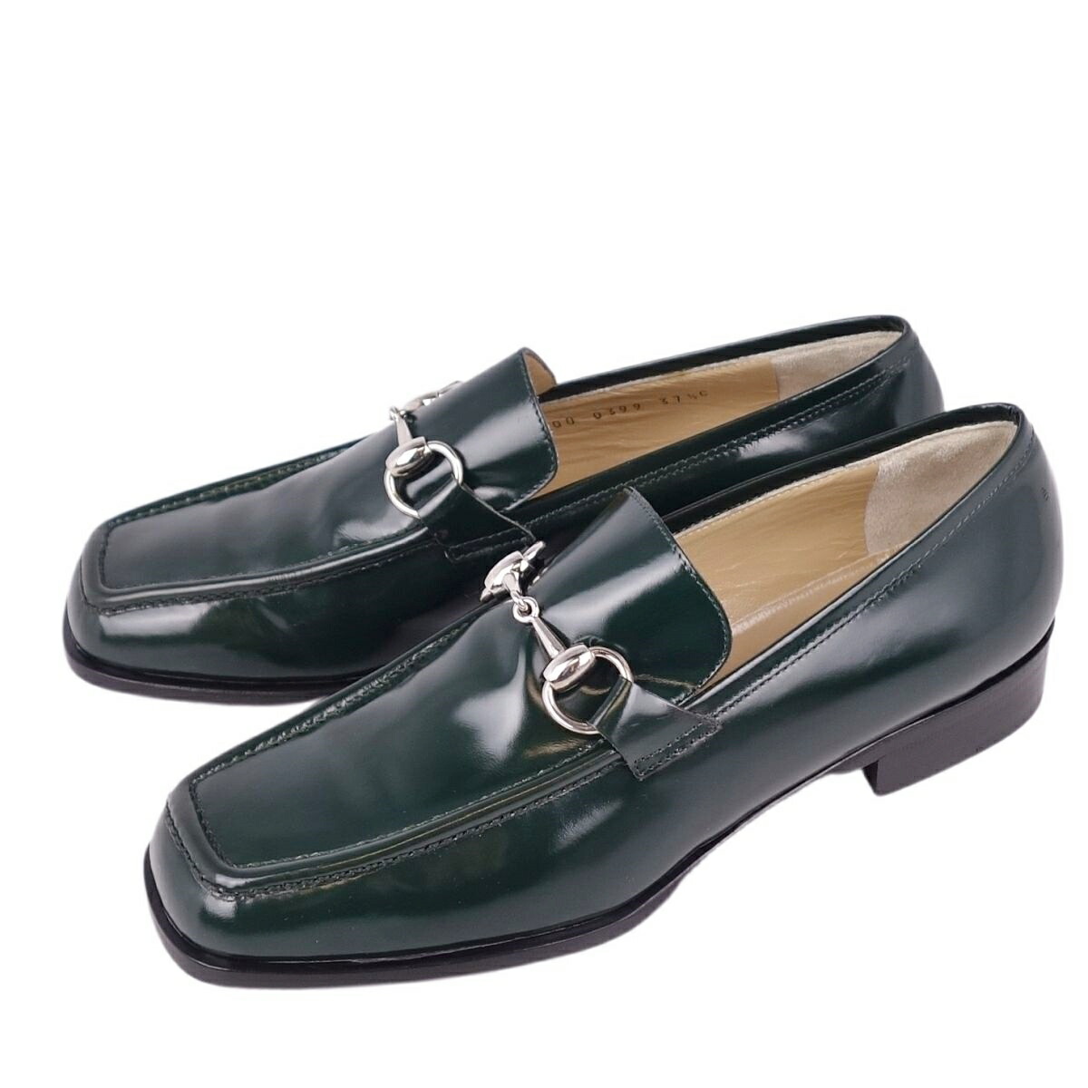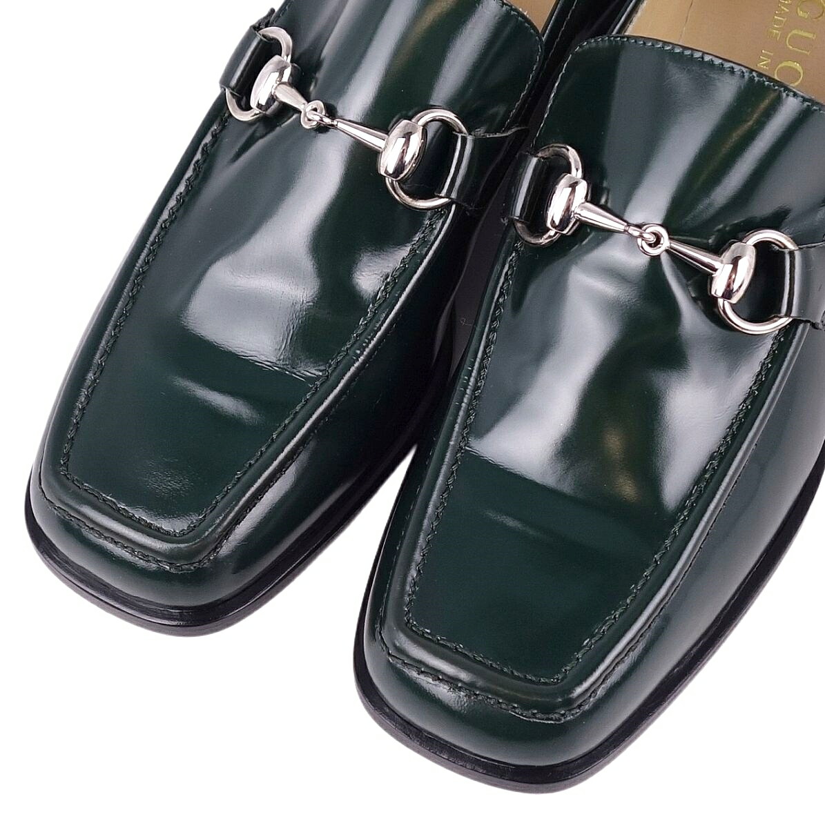 Vintage グッチ GUCCI ローファー ホースビット パテントレザー モカシン レディース シューズ グリーン サイズ37.5C(24.5cm相当)