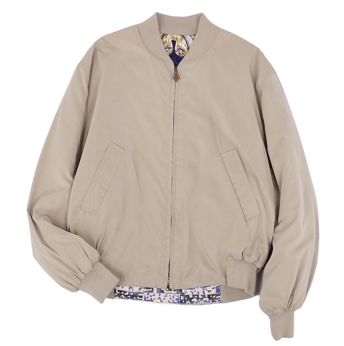 エルメス HERMES ジャケット ブルゾン ジップアップ 裏地総柄 アウター メンズ フランス製 ベージュ サイズ50(M相当)