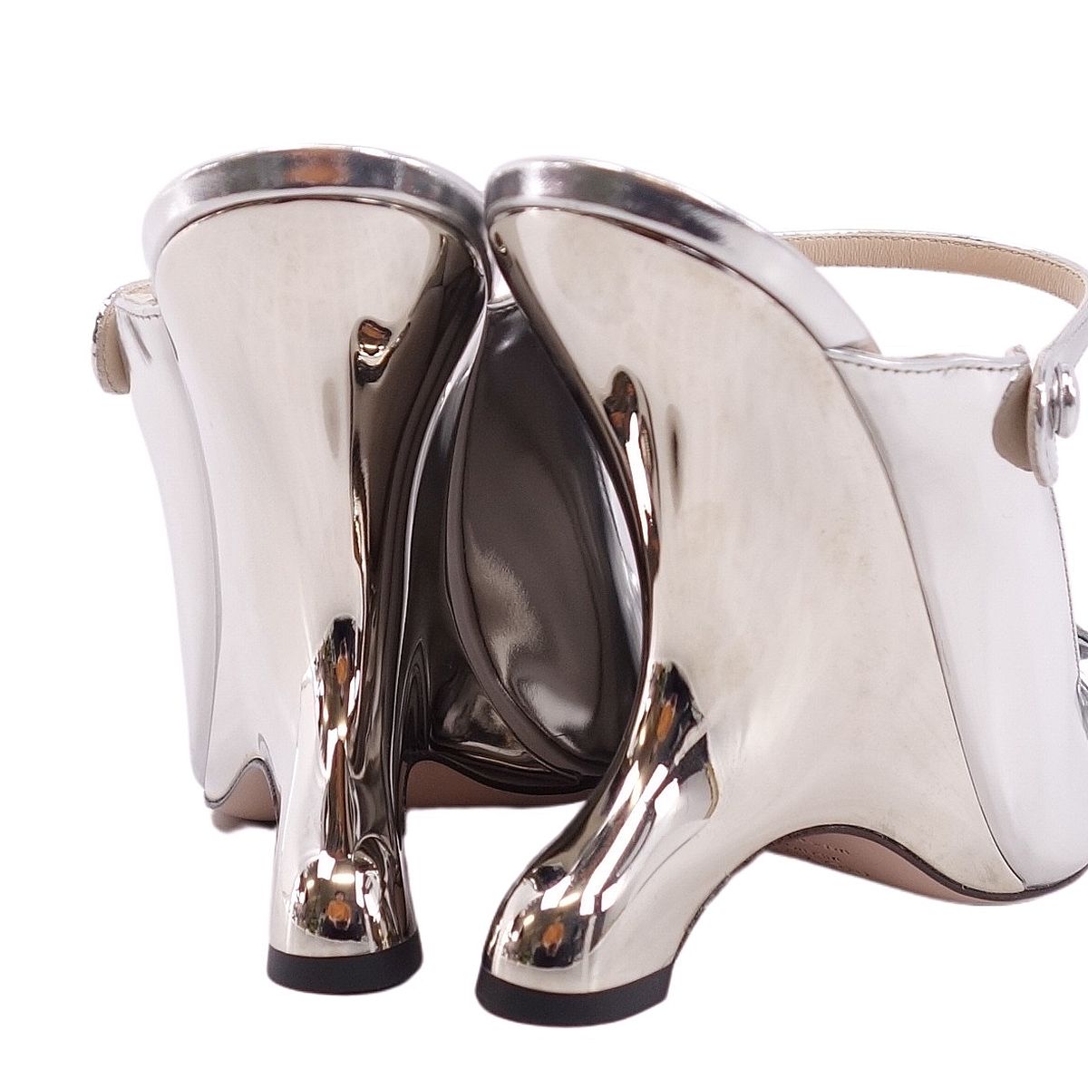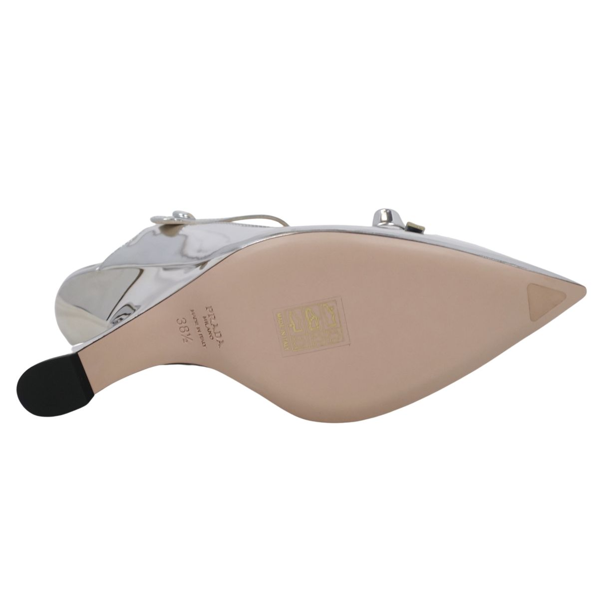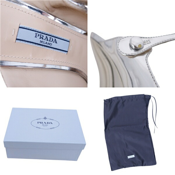 プラダ PRADA パンプス ミュール ヒール ポインテッドトゥ パテントレザー レディース シューズ 靴 シルバー サイズ38.5(25.5cm相当)