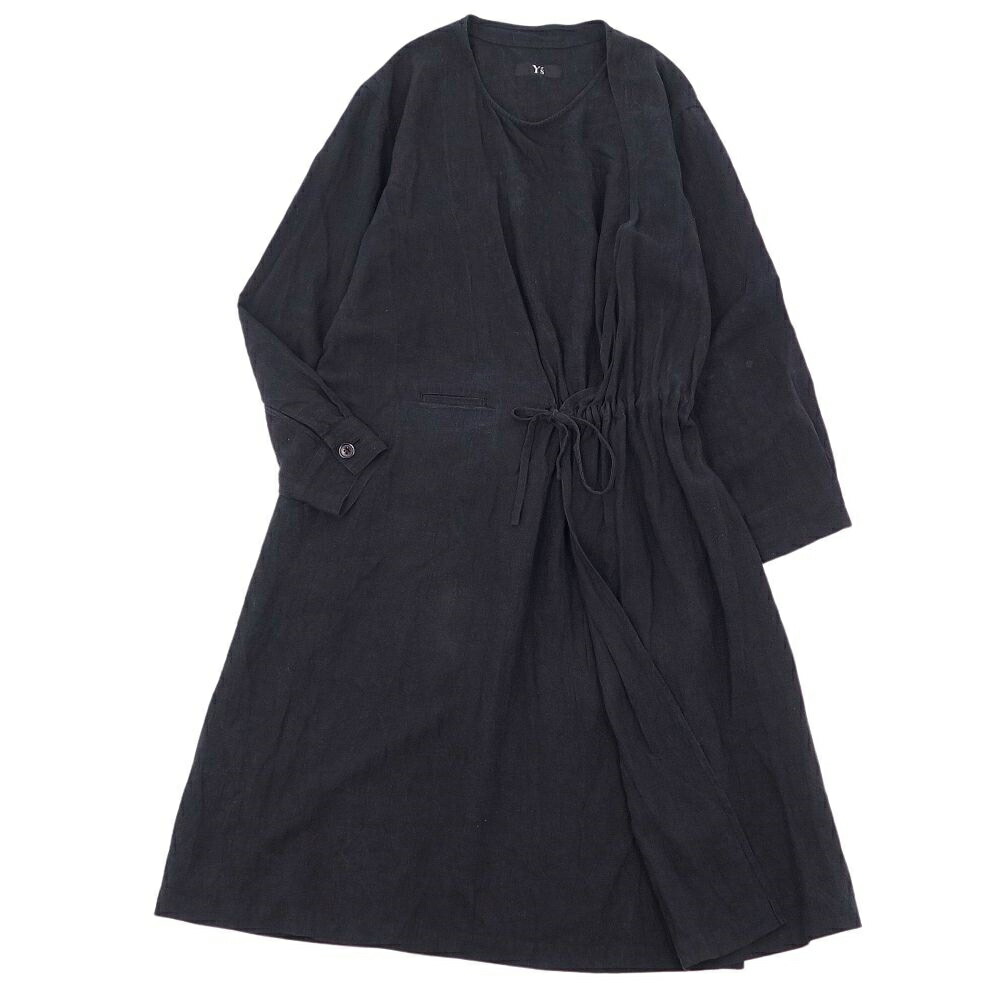 ワイズ Y’s Yohji Yamamoto ワンピース ロングスリーブ リネン 無地 トップス SAMPLE レディース ブラック サイズM相当
