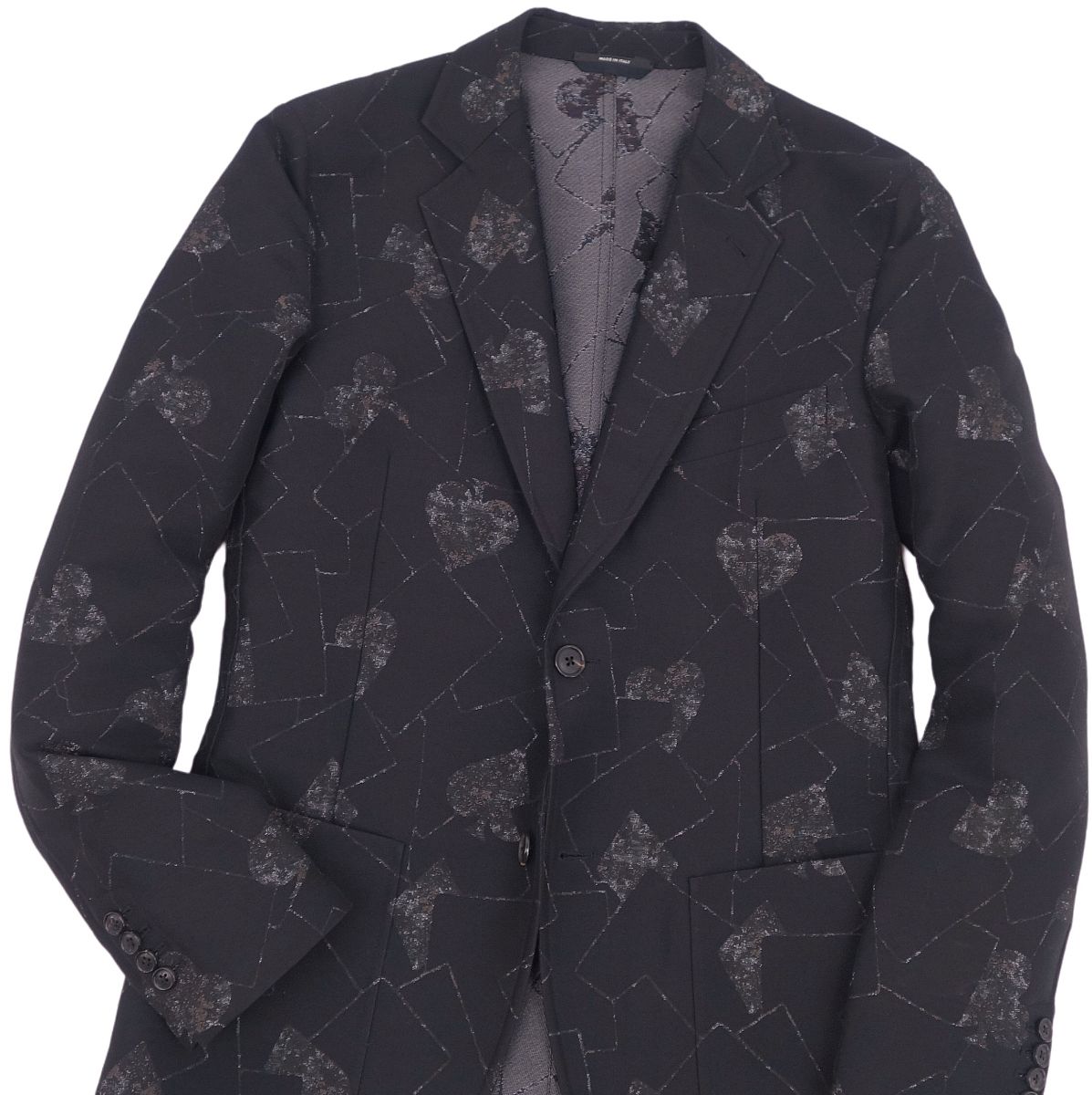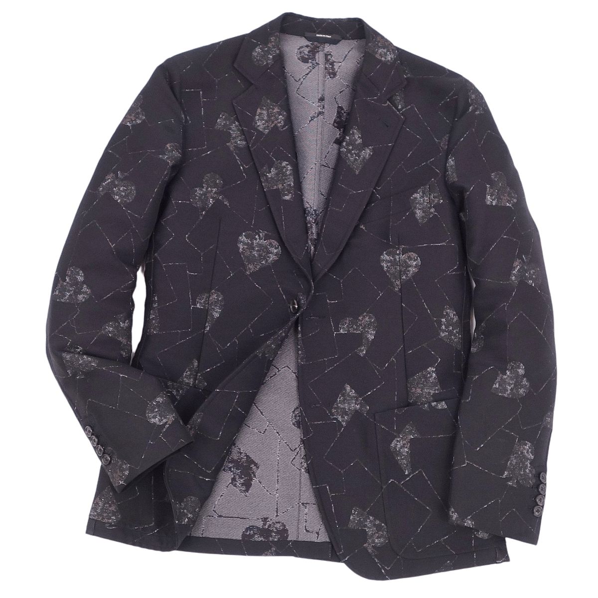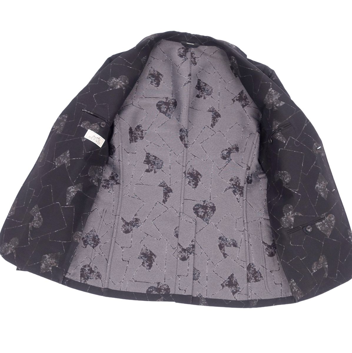 エルメス HERMES ジャケット トランプ ブレザー シングル 2ボタン ジャガード メンズ 総柄 アウター ブラック サイズ46(S相当)