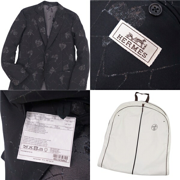 | 商品名 | 【美品】エルメス HERMES ジャケット トランプ ブレザー シングル 2ボタン ジャガード メンズ 総柄 アウター 46(S相当) ブラック【中古】 |
