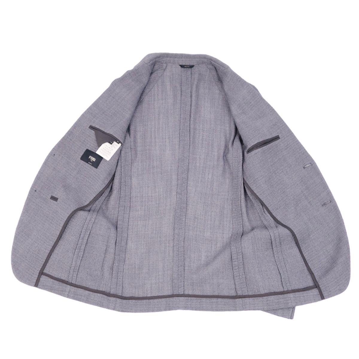 フェンディ FENDI ジャケット ニット テーラード ブレザー 芯なし メンズ シングル 2ボタン シルク混 グレー サイズ46(S相当)