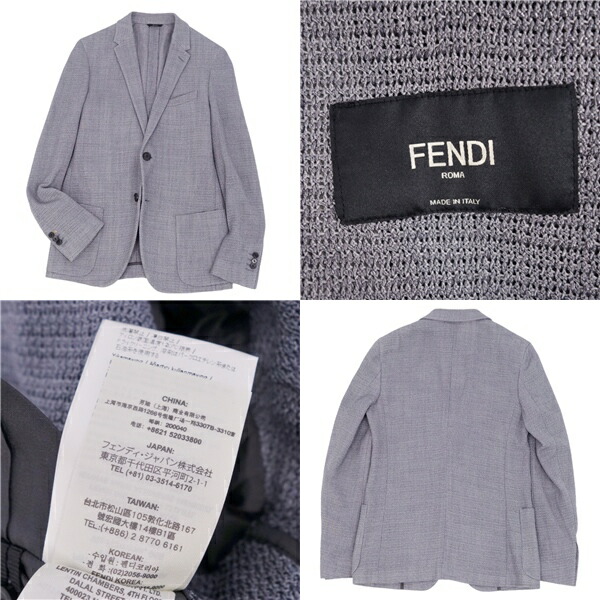 商品名 【美品】フェンディ FENDI ジャケット ニット テーラード ブレザー 芯なし メンズ シングル 2ボタン シルク混 46(S相当) グレー【中古】