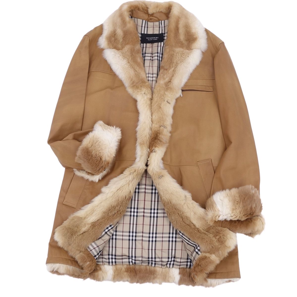 バーバリー ブラックレーベル BURBERRY BLACK LABEL コート レザー ラビットファー メンズ アウター ブラウン サイズL