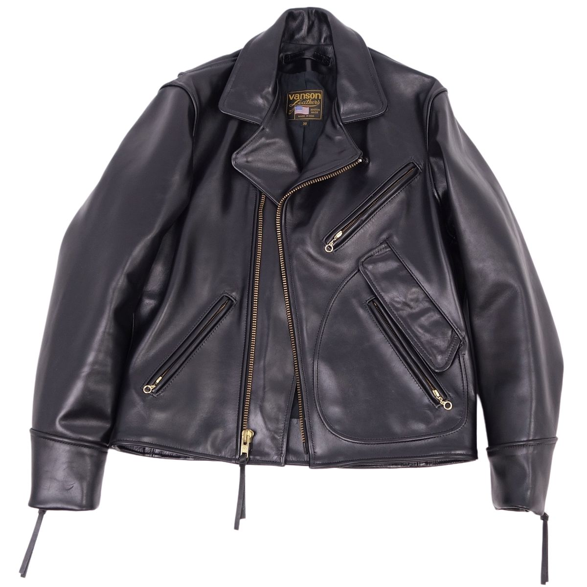 バンソン VANSON ジャケット カウハイド ライダース ダブルブレスト Dポケット メンズ アウター ブラック サイズ38(L相当)