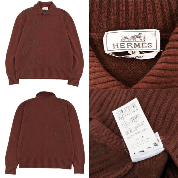 エルメス HERMES ニット カシミヤ セーター 襟付き メンズ 長袖 ロングスリーブ トップス ブラウン サイズM