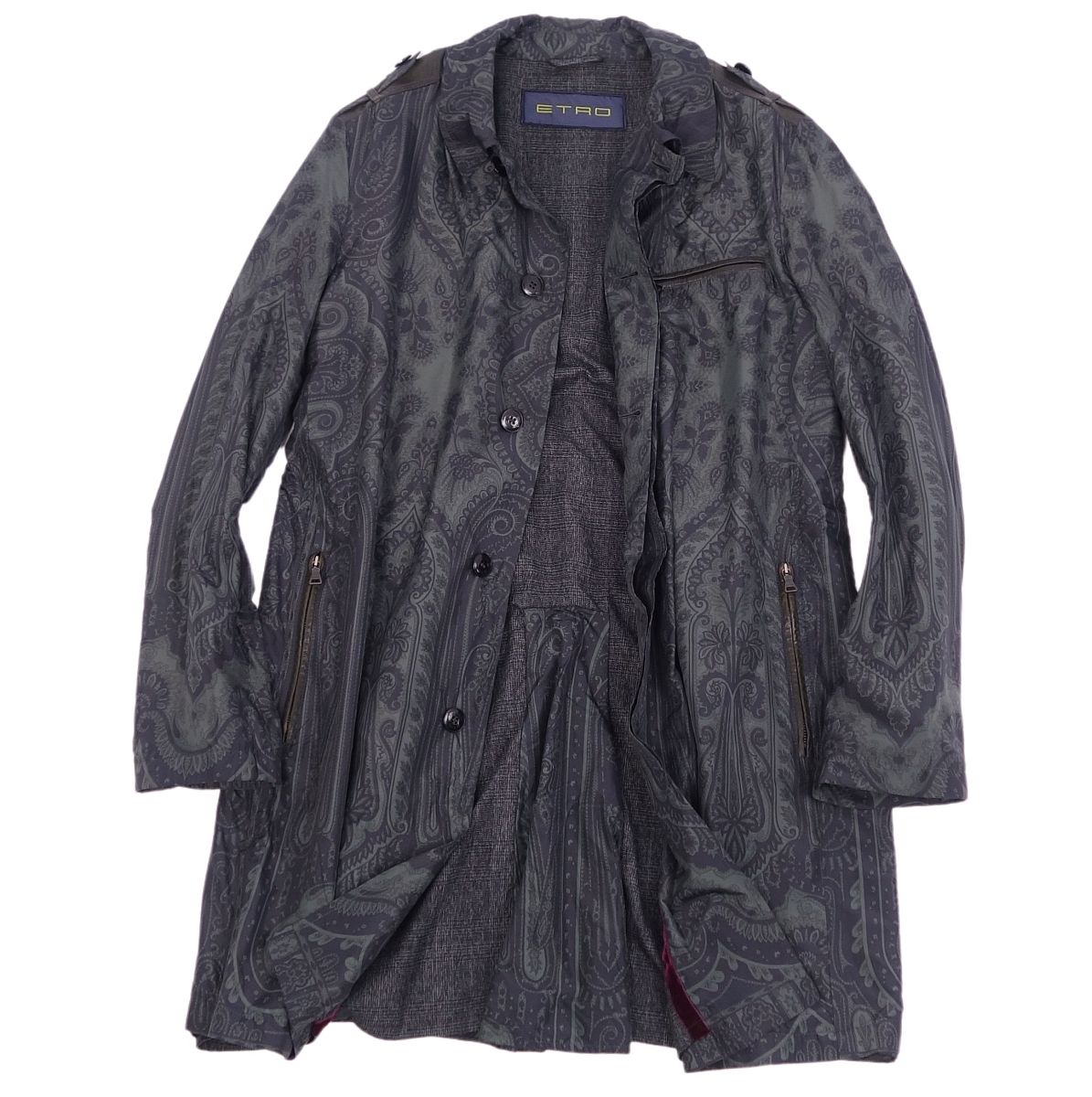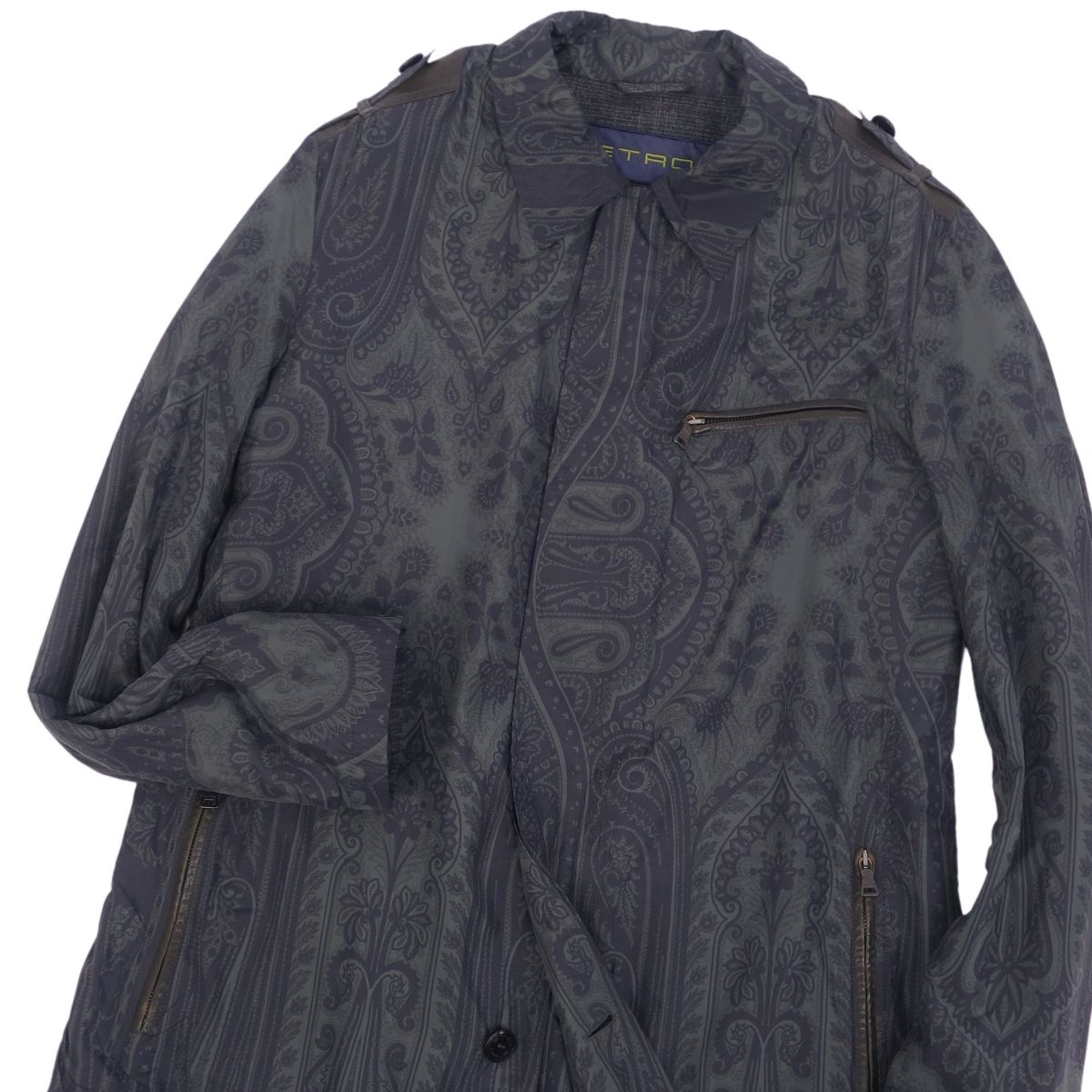 エトロ ETRO コート ロングコート ナイロン ペイズリー ラムレザー アウター メンズ イタリア製 カーキ/ネイビー サイズM