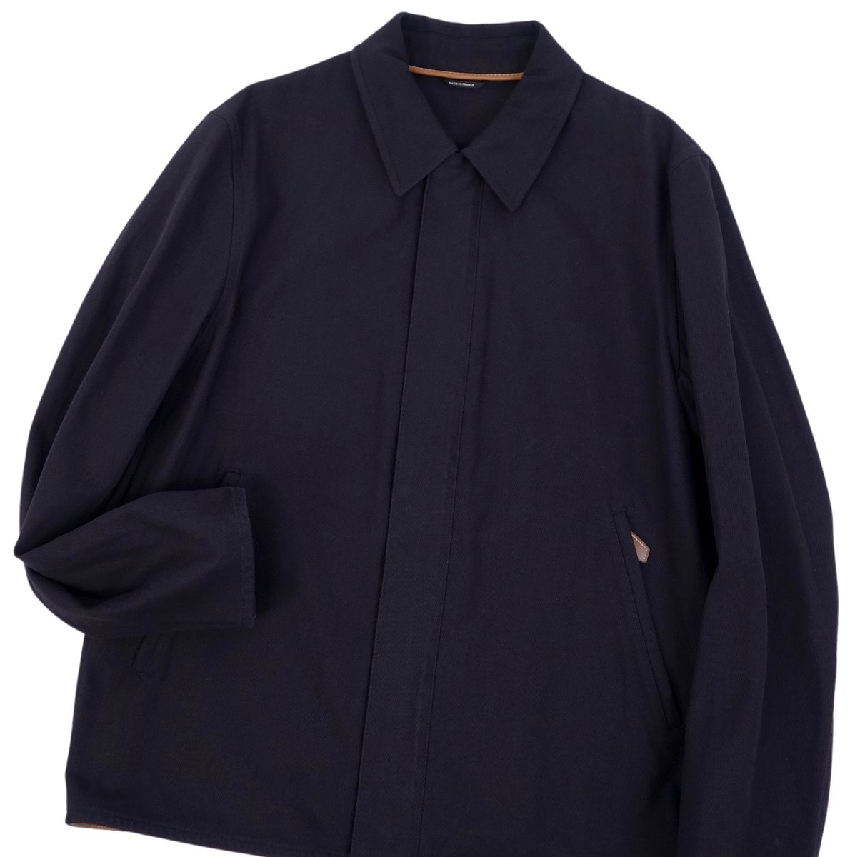 商品名 エルメス HERMES ジャケット ブルゾン ジップアップ 裏ラムレザー コットン 無地 アウター メンズ 50(M相当) ネイビー【中古】