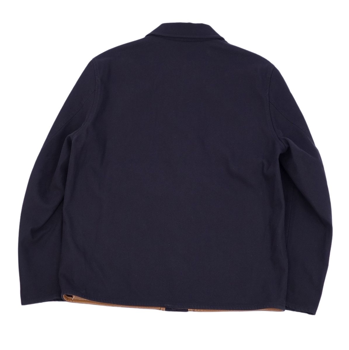 エルメス HERMES ジャケット ブルゾン ジップアップ 裏ラムレザー コットン 無地 アウター メンズ 50(M相当) ネイビー【中古】