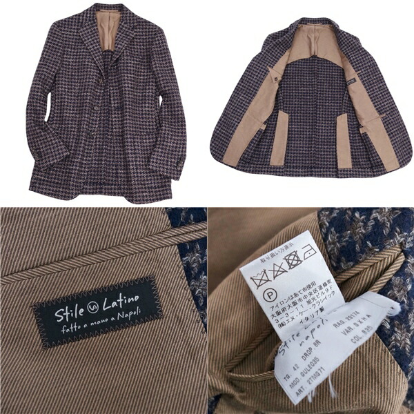 【美品】スティレラティーノ Stile Latino ジャケット ツイード テーラード ブレザー メンズ シングル 3ボタン アウター 42(S相当) ネイビー/グレー【中古】