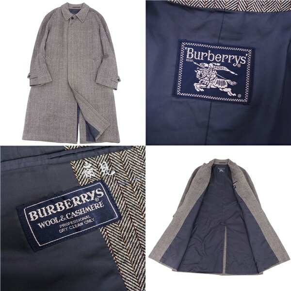 商品名 【美品】Vintage バーバリー Burberrys コート ステンカラーコート バルマカーンコート ツイード カシミヤ ウール メンズ アウター 古着 94-175(L相当) グレー ヴィンテージ ビンテージ【中古】