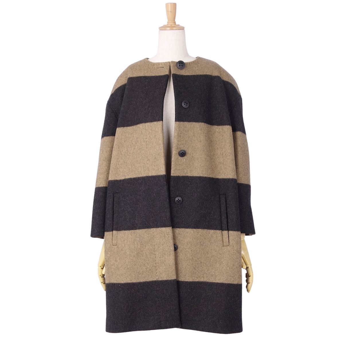 マックスマーラ Max Mara STUDIO コート ノーカラー ボーダー オーバーサイズ ウール レディース アウター ブラウン/ブラック サイズIJ38 USA4 FB36(S相当)