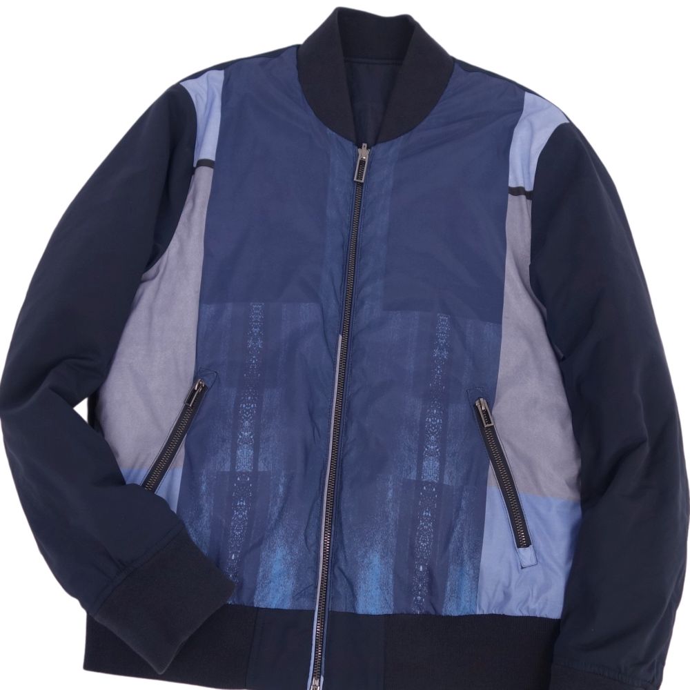 エンポリオアルマーニ EMPORIO ARMANI ジャケット ブルゾン リバーシブル ジップアップ 中綿入り 総柄 アウター メンズ ネイビー/ブルー サイズ50(M相当)
