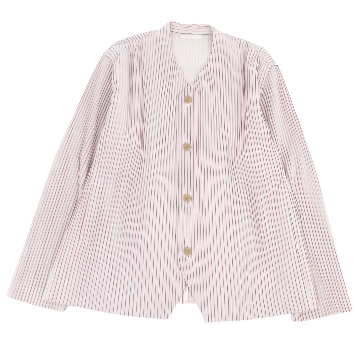 オムプリッセ イッセイミヤケ HOMME PLISSE ISSEY MIYAKE ジャケット プリーツ ノーカラー メンズ ストライプ アウター マルチカラー サイズ2(M相当)