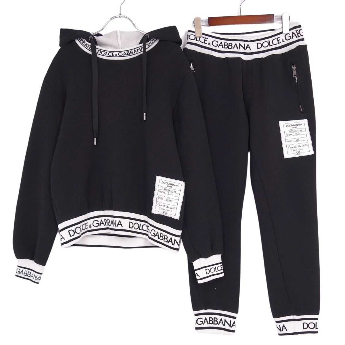 ドルチェ&ガッバーナ DOLCE&GABBANA セットアップ スウェット パーカー プルオーバー イージーパンツ メンズ ブラック サイズ44(S相当)