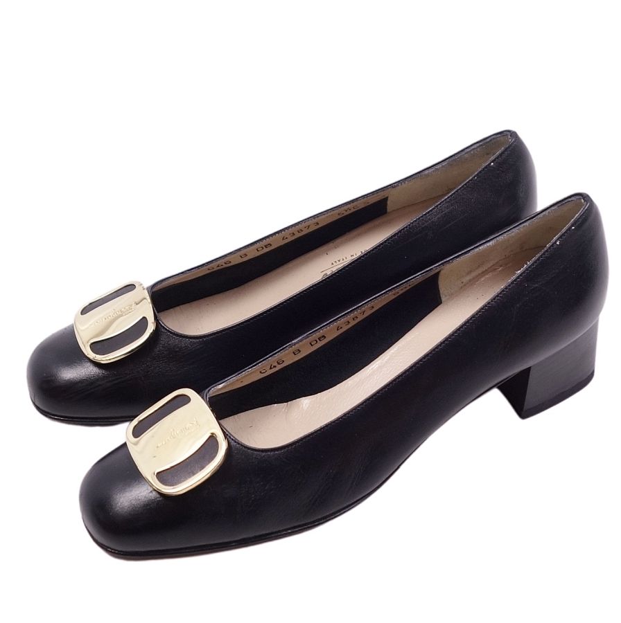 サルヴァトーレ フェラガモ Salvatore Ferragamo パンプス ヴァラ カーフレザー ヒール シューズ 靴 レディース 5 1/2C(23cm相当) ブラック【中古】