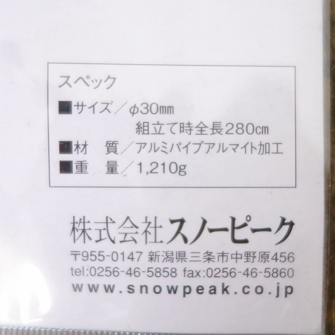 スノーピーク snowpeak ウィングポール280 TP-001 タープポール 跳ね上げポール キャンプ アウトドア – サイズ-