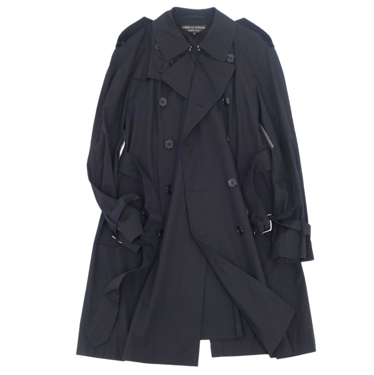 コムデギャルソンオムプリュス COMME des GARCONS HOMME PLUS コート トレンチコート 無地 コットン メンズ アウター ブラック サイズS