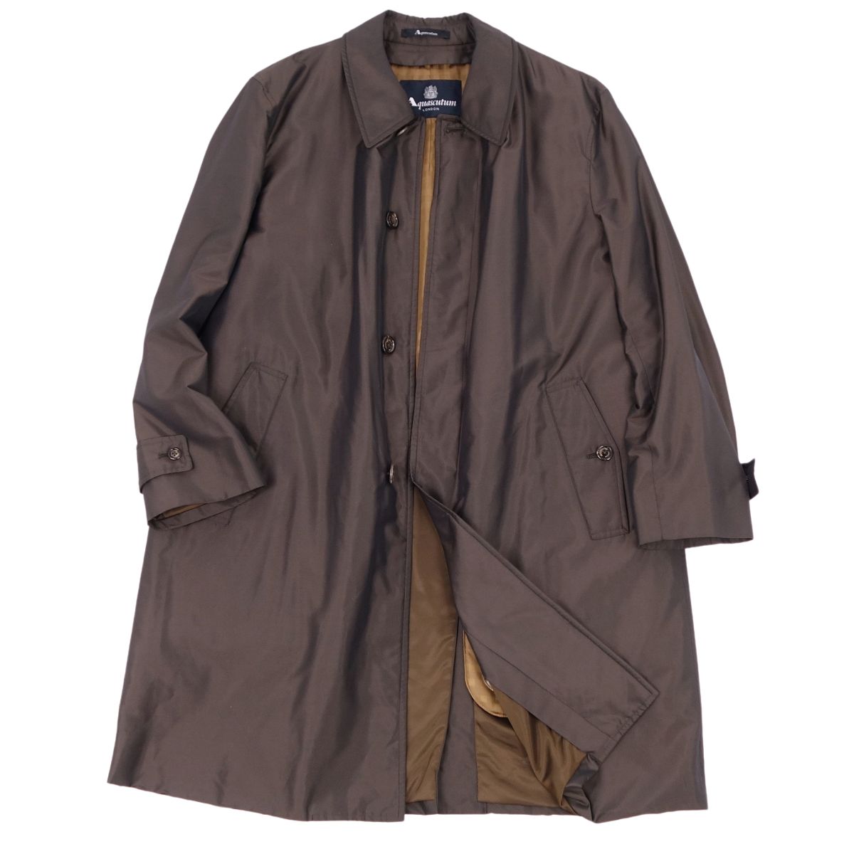 【美品】アクアスキュータム Aquascutum LONDON コート シルク混 ステンカラーコート バルマカーンコート ダウンライナー メンズ アウター 36(S相当) ブラウン【中古】
