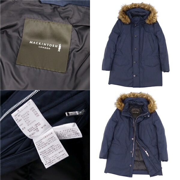 マッキントッシュ MACKINTOSH ジャケット ダウンジャケット 襟フェイクファー ジップアップ アウター メンズ ネイビー サイズ38(M相当)