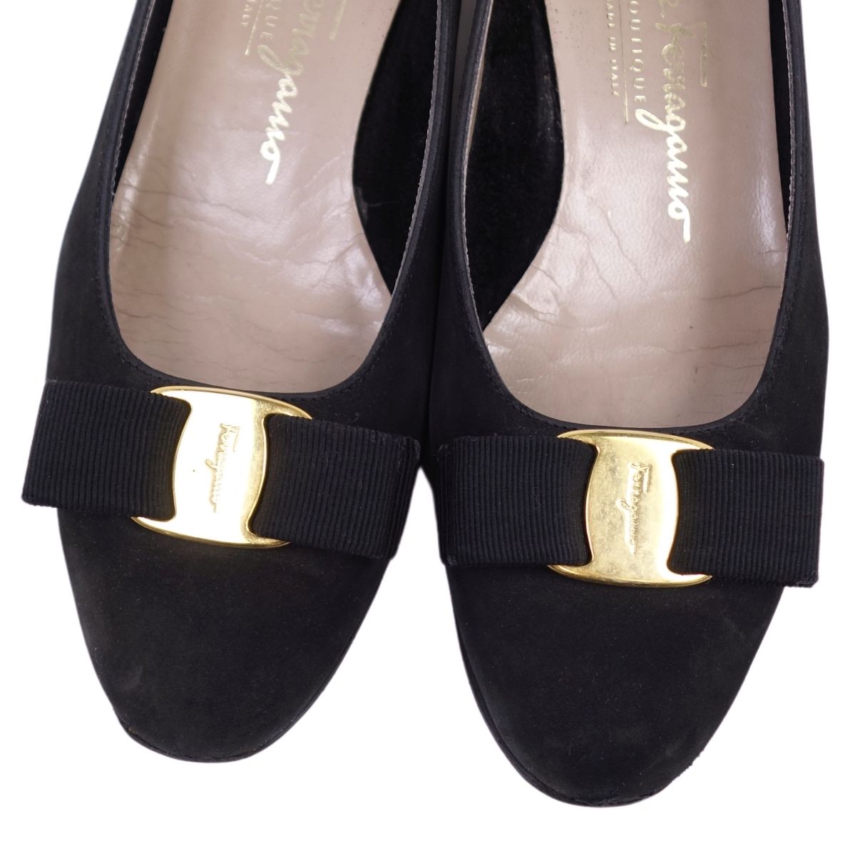 サルヴァトーレ フェラガモ Salvatore Ferragamo パンプス ヒール ヴァラリボン ヌバックレザー シューズ レディース ブラック サイズ5.5C(23cm相当)
