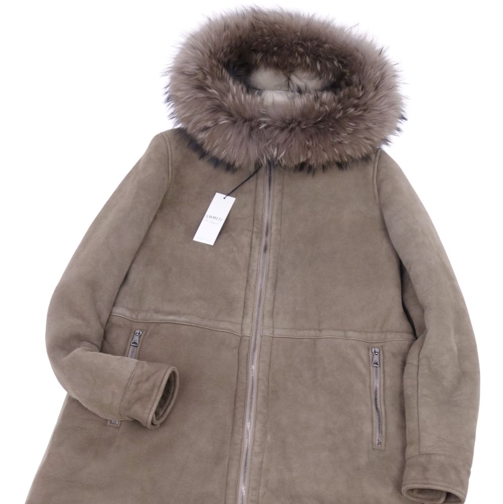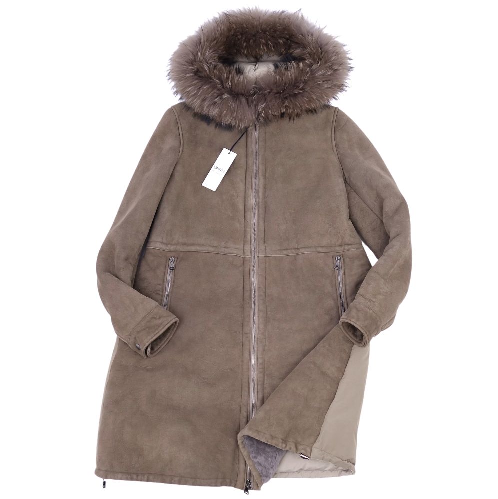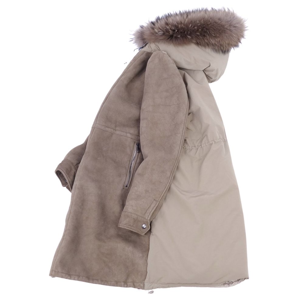 エンメティ EMMETI コート ロングコート ムートン ダウン 襟ラクーンファー 切り替え アウター メンズ ライトブラウン/ベージュ サイズ38(M相当)